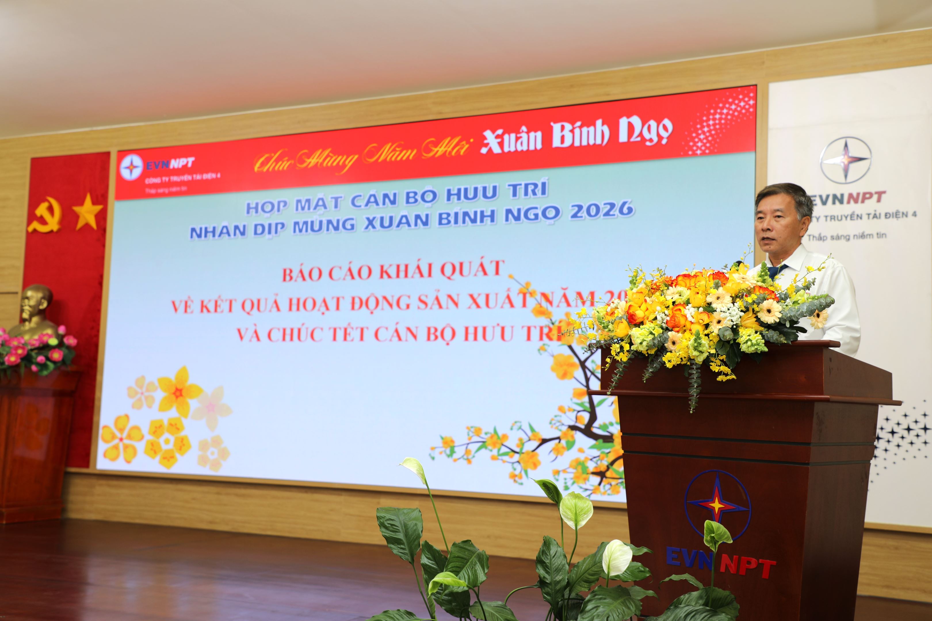 Thay mặt lãnh đạo Công ty và đơn vị, ông Bùi Văn Hoàng – Đội trưởng đã thông tin khái quát những kết quả nổi bật trong hoạt động sản xuất kinh doanh năm 2025, đồng thời trình bày phương hướng, nhiệm vụ trọng tâm năm 2026. Nhân dịp đầu Xuân Bính Ngọ, lãnh đạo Đội đã trân trọng gửi lời chúc sức khỏe, hạnh phúc tới các cán bộ hưu trí; đồng thời khẳng định tập thể lãnh đạo và người lao động Đội Sửa chữa thí nghiệm điện 4 sẽ tiếp tục phát huy truyền thống đoàn kết, trách nhiệm, xây dựng đơn vị và Công ty ngày càng phát triển bền vững.