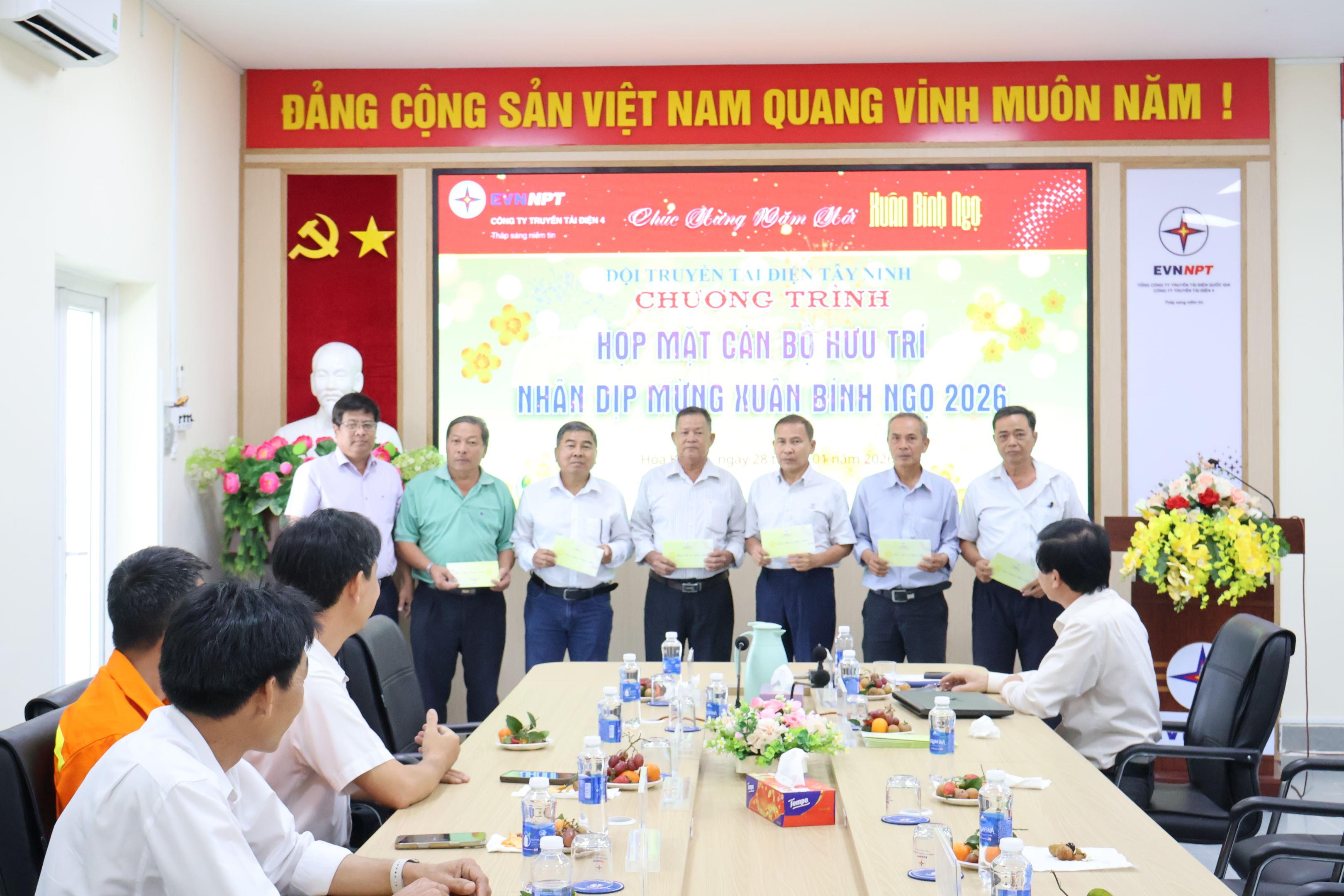 Chương trình họp mặt, tri ân cán bộ hưu trí nhân dịp Xuân Bính Ngọ 2026 của Đội Truyền tải điện Vĩnh Long đã diễn ra trang trọng, đầm ấm, để lại nhiều tình cảm tốt đẹp, góp phần củng cố sự gắn kết giữa các thế hệ trong đại gia đình Công ty Truyền tải điện 4.