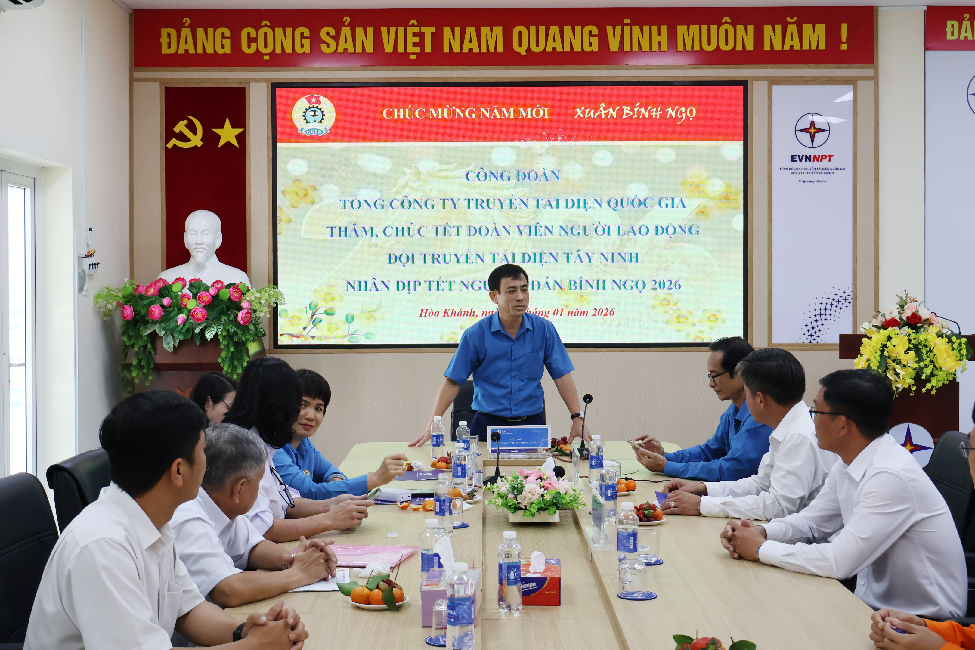 Tết đến xuân về là dịp để tổ chức Công đoàn thể hiện sự quan tâm, chăm lo đời sống đoàn viên, người lao động. Công đoàn Tổng công ty luôn đồng hành cùng CBCNV, đặc biệt là lực lượng trực tiếp làm nhiệm vụ trên lưới điện truyền tải. Mong tập thể Đội Truyền tải điện Tây Ninh tiếp tục đoàn kết, nỗ lực hoàn thành tốt nhiệm vụ, đảm bảo cung cấp điện an toàn, ổn định trong dịp cao điểm Tết.”