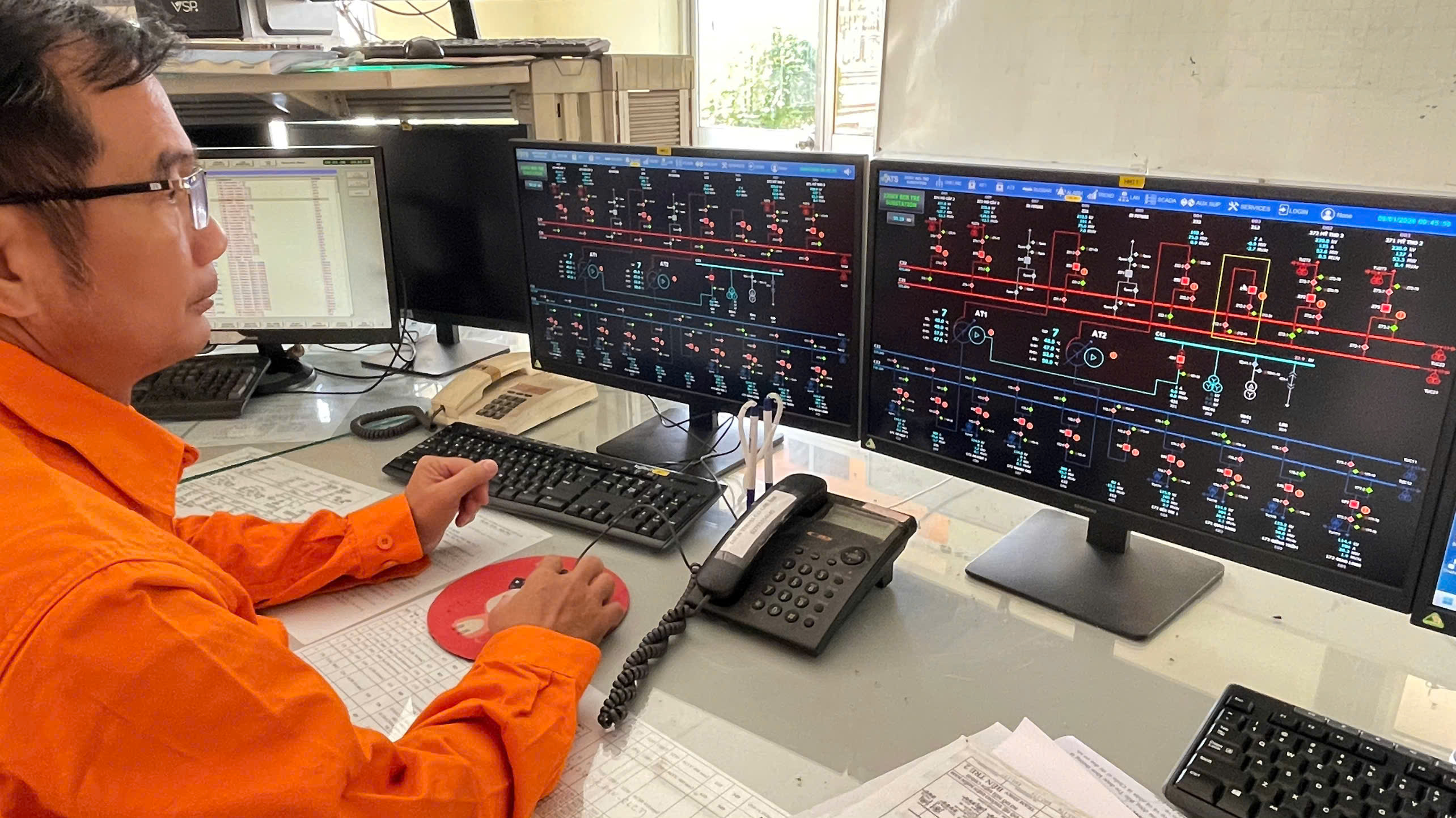 Điều hành viên giám sát trạng thái thiết bị qua hệ thống HMI.
