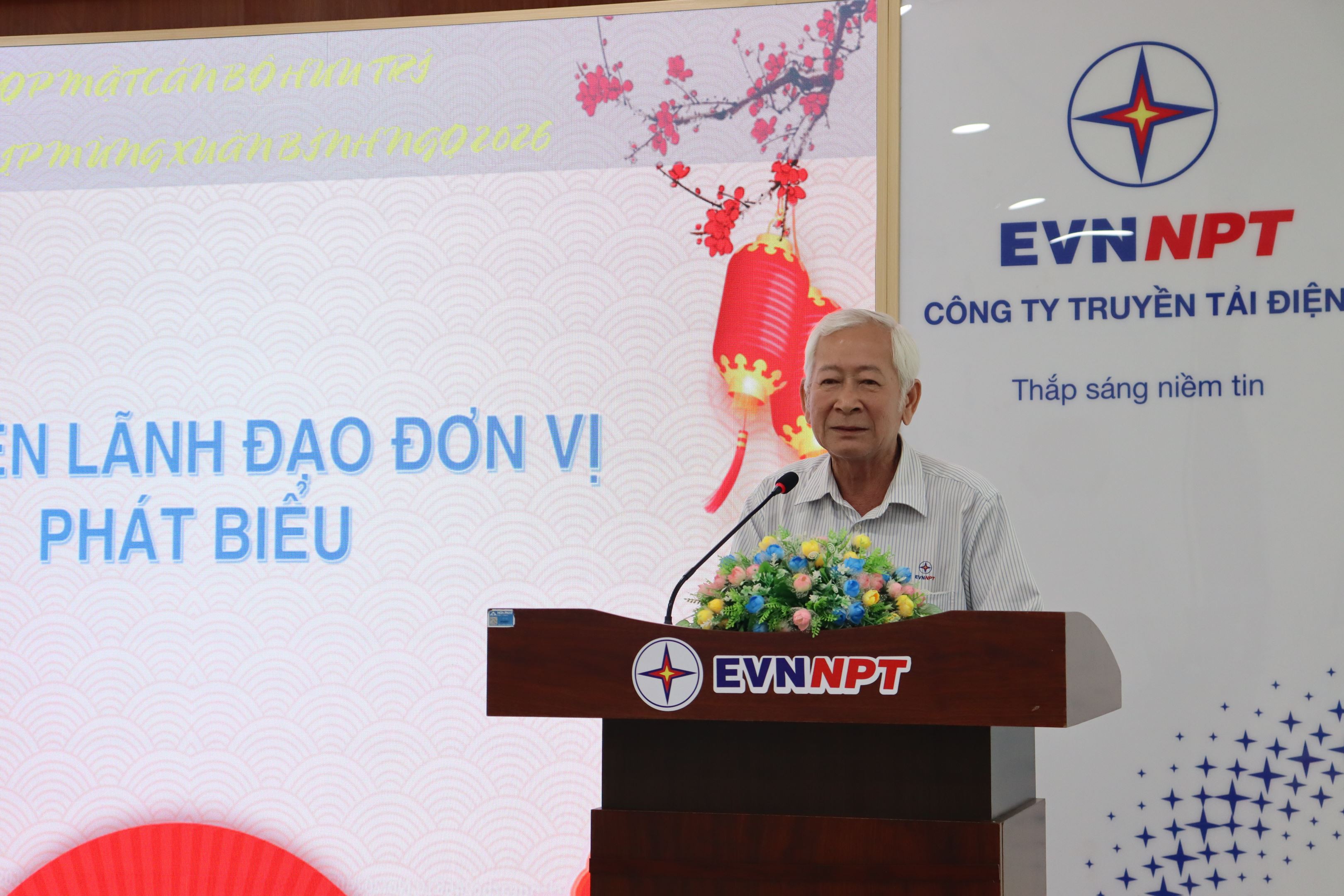 Phát biểu tại chương trình, ông Nguyễn Duy Trung – Đội trưởng Đội Truyền tải điện Tây Ninh đã ân cần thăm hỏi sức khỏe và gửi lời chúc mừng năm mới tới các cán bộ hưu trí. Ông nhấn mạnh: “Những kết quả mà Đội Truyền tải điện Tây Ninh đạt được hôm nay có sự đóng góp rất quan trọng của các thế hệ cán bộ đi trước. Các bác, các anh chính là những người đã đặt nền móng vững chắc, truyền lại tinh thần trách nhiệm, kỷ luật và đoàn kết cho lớp cán bộ kế cận.”