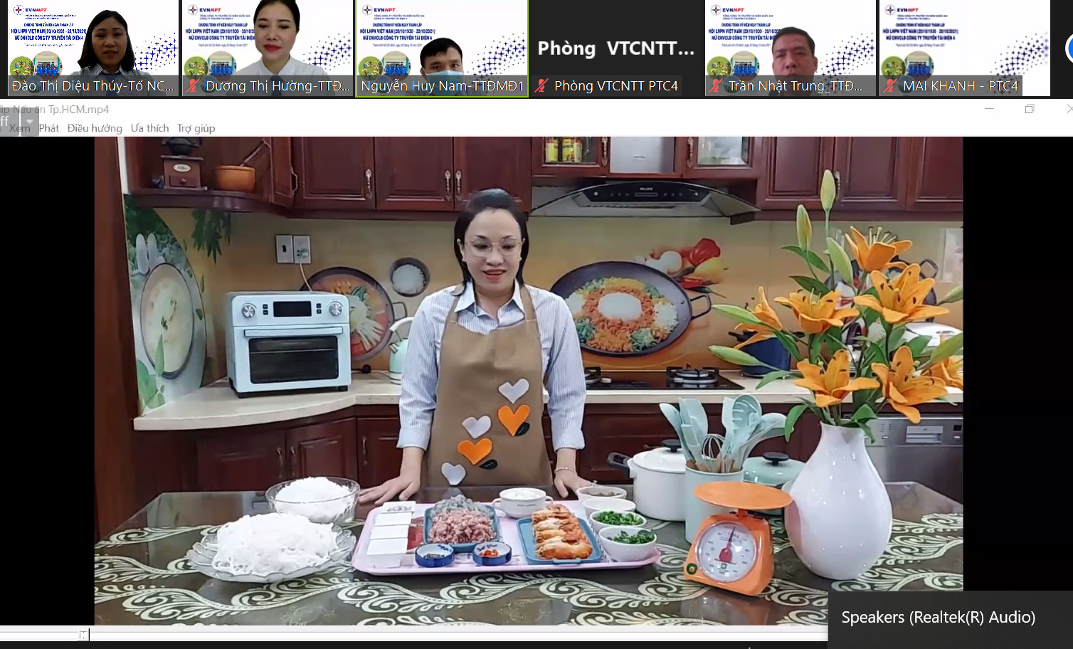 Chị Trần Thanh Quỳnh Như – tổ Nữ công TTĐ HCM hướng dẫn nấu món ngon cho gia đình trong mùa Covid.