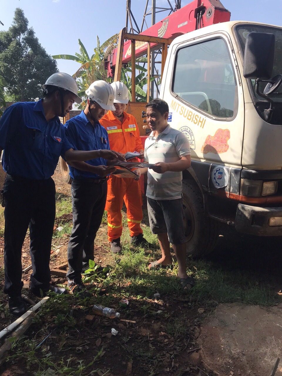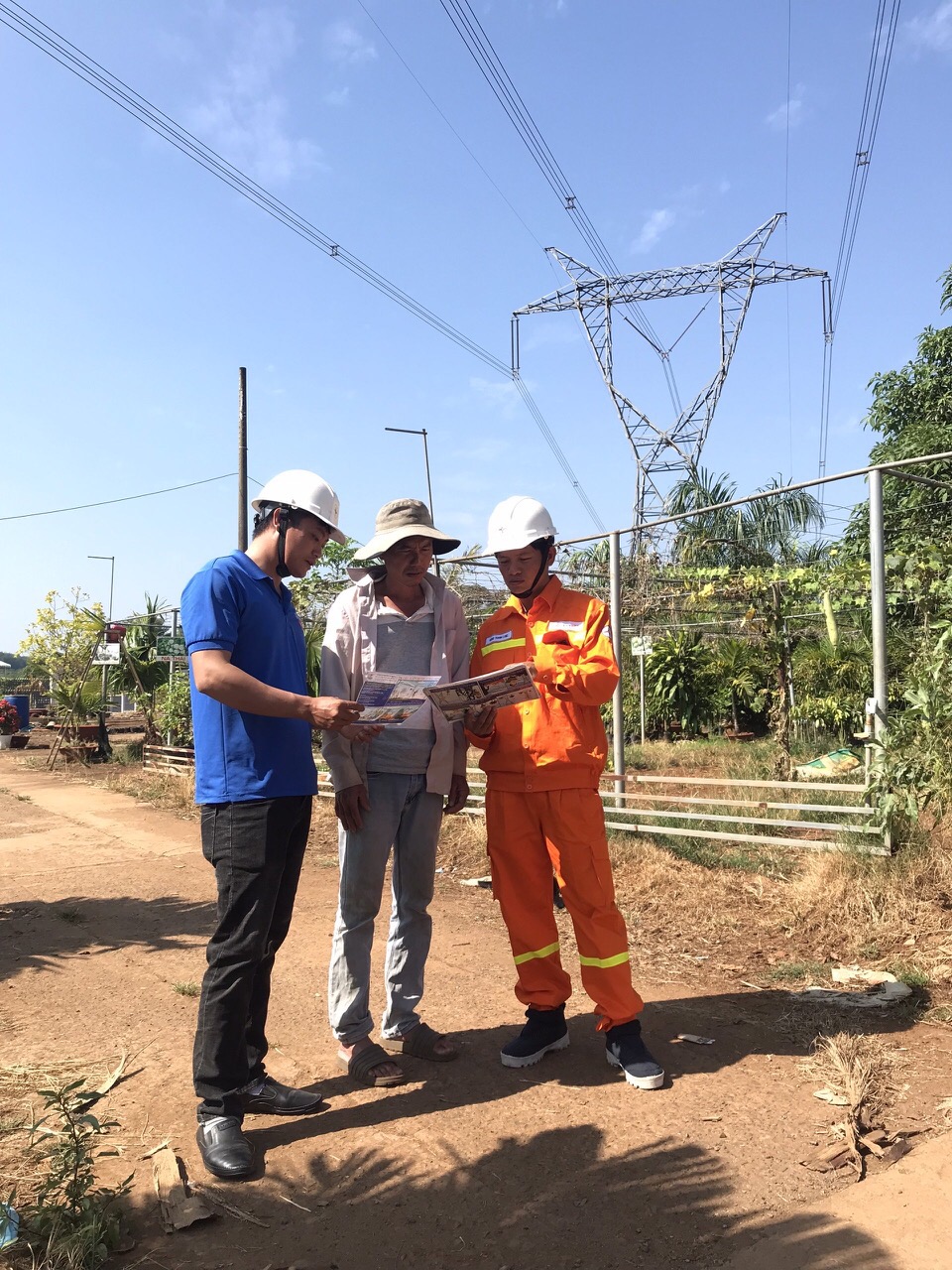 Phát tờ rơi và hướng dẫn người dân khoảng cách an toàn của hành lang lưới điện.