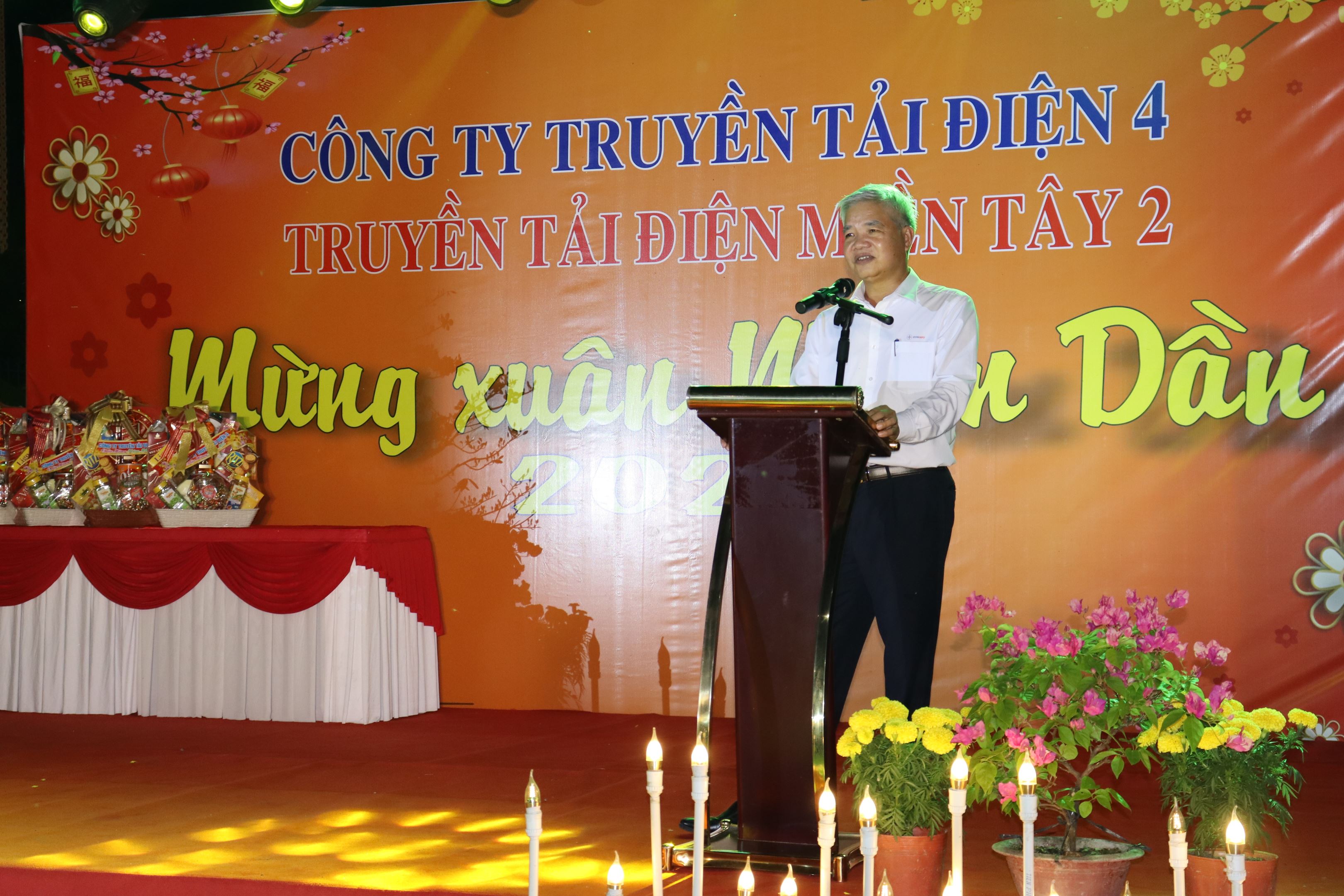 Ông Ngô Mạnh Trung – Giám đốc Truyền tải điện miền Tây 2 đã thay mặt CBCNV đơn vị cám ơn lời chúc tết của Giám đốc Công ty Truyền tải điện 4 và cho biết để đạt được những thành quả quan trọng trong hoạt động sản xuất năm 2021 phải nói đến sự đoàn kết, tính tuân thủ và nỗ lực cố gắng, sự gắn bó của CBCNV đơn vị với Công ty thông qua công tác lao động sản xuất, sáng tạo cải tiến kỹ thuật, nâng cao năng suất lao động,…. cũng như sự hưởng ứng các hoạt động phong trào của Công ty. Luôn nêu cao tinh thần trách nhiệm của toàn thể CBCNV đơn vị TTĐMT2 nói chung và CBCNV Đội TTĐ Trà Vinh nói riêng.