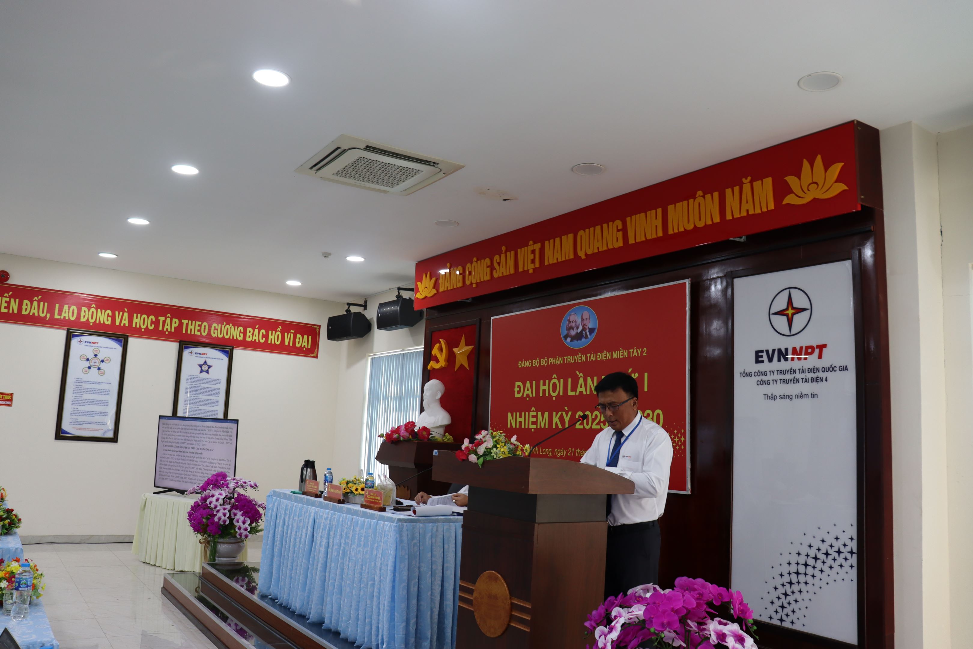 Đại hội đã được nghe đồng chí Nguyễn Văn Tuấn – Phó Bí thư Đảng bộ bộ phận, Phó Giám đốc Truyền tải điện miền Tây 2 thay mặt Đảng bộ bộ phận trình bày báo cáo thực hiện Nghị quyết đại hội trong nhiệm kỳ 2020 – 2025 vừa qua. Trong báo cáo đã nêu bật những kết quả đạt được, những khó khăn, thuận lợi và bài học kinh nghiệm qua 5 năm thực hiện Nghị quyết dưới sự lãnh đạo, chỉ đạo của Đảng ủy Công ty Truyền tải điện 4. Theo đó, Đảng bộ bộ phận đã bám sát các chủ trương, nghị quyết, chiến lược, chỉ thị của cấp trên và kế hoạch được giao, cụ thể hóa thành các chương trình hành động, kế hoạch, hướng dẫn để thực hiện trong từng năm, đề ra các giải pháp cụ thể, tập trung lãnh đạo, chỉ đạo quyết liệt và sâu sát; Với truyền thống đoàn kết, tinh thần chủ động, sáng tạo, vượt qua khó khăn thử thách, nỗ lực phấn đấu của tập thể cán bộ đảng viên, công nhân viên, Truyền tải điện miền Tây 2 đã hoàn thành tốt các chỉ tiêu, nhiệm vụ mà Nghị quyết Đảng bộ bộ phận đã đề ra.