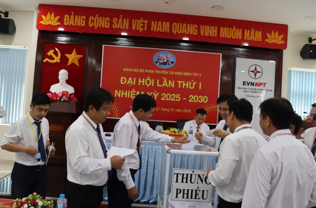Đại biểu tại Đại hội bỏ phiếu bầu Ban chấp hành Đảng bộ bộ phận Truyền tải điện miền Tây 2 nhiệm kỳ 2025 - 2030.