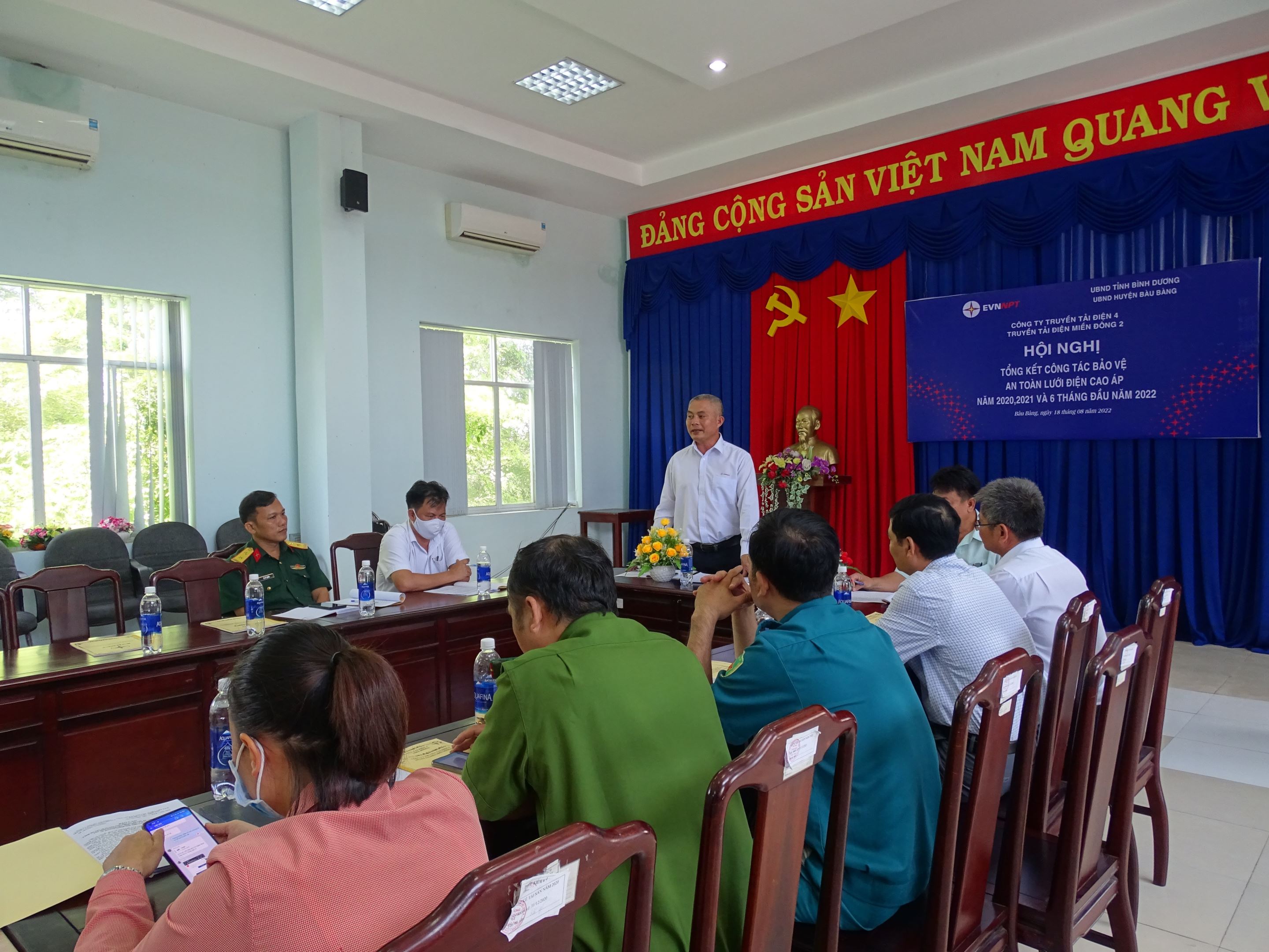 Đến dự có Ông Trần Văn Đông– Phó chủ tịch UBND huyện , đại diện lãnh đạo phòng Công an tỉnh Bình Dương, lãnh đạo UBND, Công an, BCH Quân sự, Trung tâm phát triển quỹ đất, điện lực huyện Bàu Bàng, Phòng quản lý trật tự đô thị và xã Trừ Văn Thố, Lai Hưng ,Lai Uyên, Hưng Hòa, Tân Hưng, Long Nguyên Về phía đơn vị QLVH lưới điện có Ông Nguyễn Văn Huân- Đội trưởng Đội TTĐ Chơn Thành- Truyền tải điện miền Đông 2 (TTĐMĐ2) cùng các phòng tham dự.