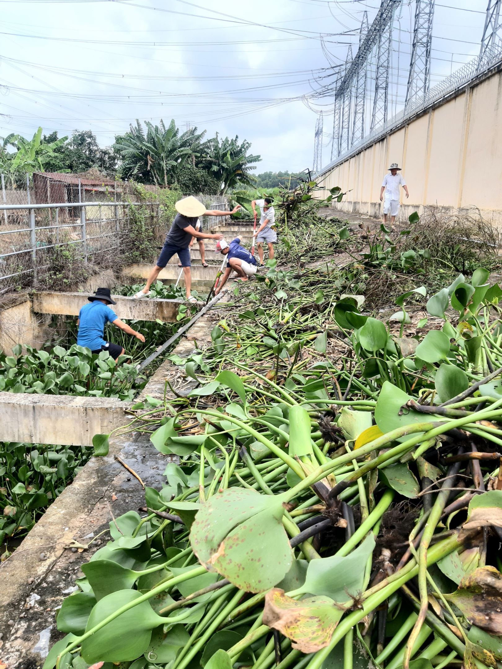 Tranh thủ dọn vệ sinh và khơi thông hệ thống thoát nước tại trạm.
