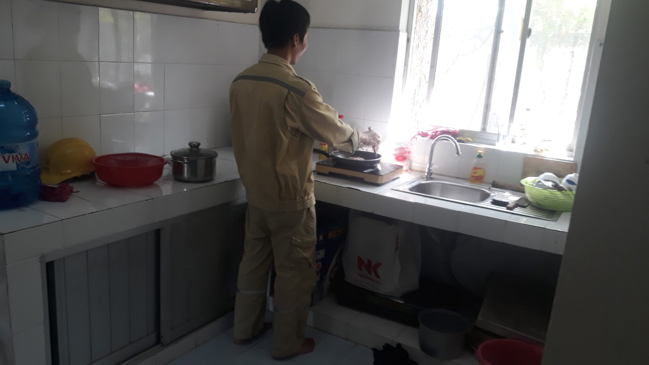 Tự thực hiện nấu ăn để đảm bảo sức khỏe của CBCNV trạm 220kV Bình Hòa.