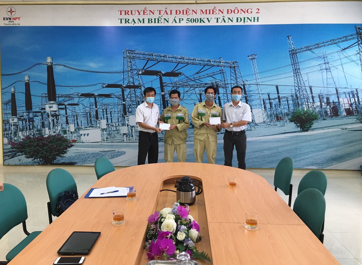 Ông Nguyễn Minh Dũng –Giám đốc và Ông Nguyễn Vỹ -Phó Giám đốc , Chủ tịch TTĐMĐ2 đến động viên thăm hỏi CBCNV trạm 500kV Tân Định.