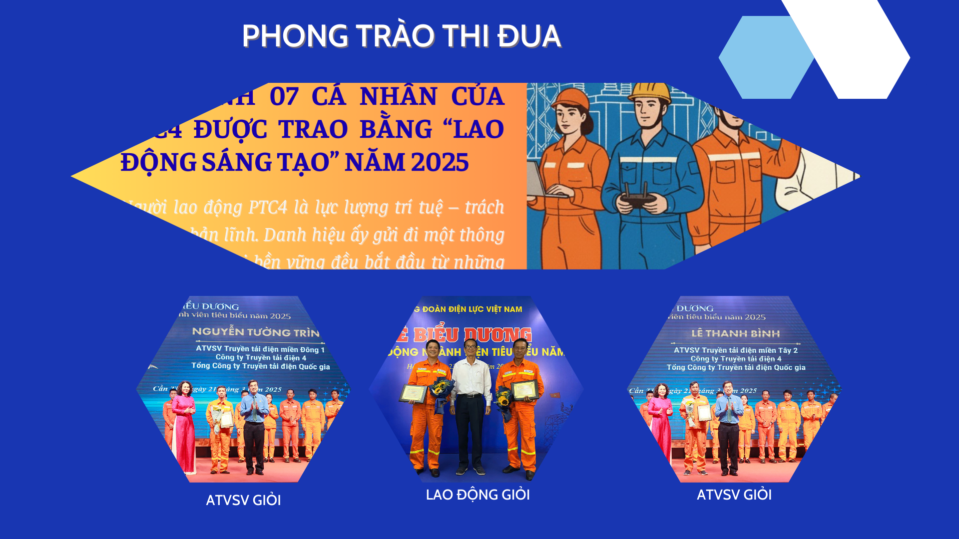 Năm 2025, Công đoàn phối hợp phát động phong trào “10.000 sáng kiến”, phong trào "Bình dân học vụ số", thúc đẩy tự học AI, chuyển đổi số. Nhiều tập thể, cá nhân đạt danh hiệu công nhân giỏi, ATVSV giỏi cấp EVNNPT và EVN. Năm 2025, CNVCLĐ Công ty phát huy 110 sáng kiến cải tiến kỹ thuật, 02 đề tài nghiên cứu khoa học, có 07 cá nhân được Tổng Liên đoàn tặng bằng Lao động sáng tạo 2025 – khẳng định sức sáng tạo của đội ngũ truyền tải.