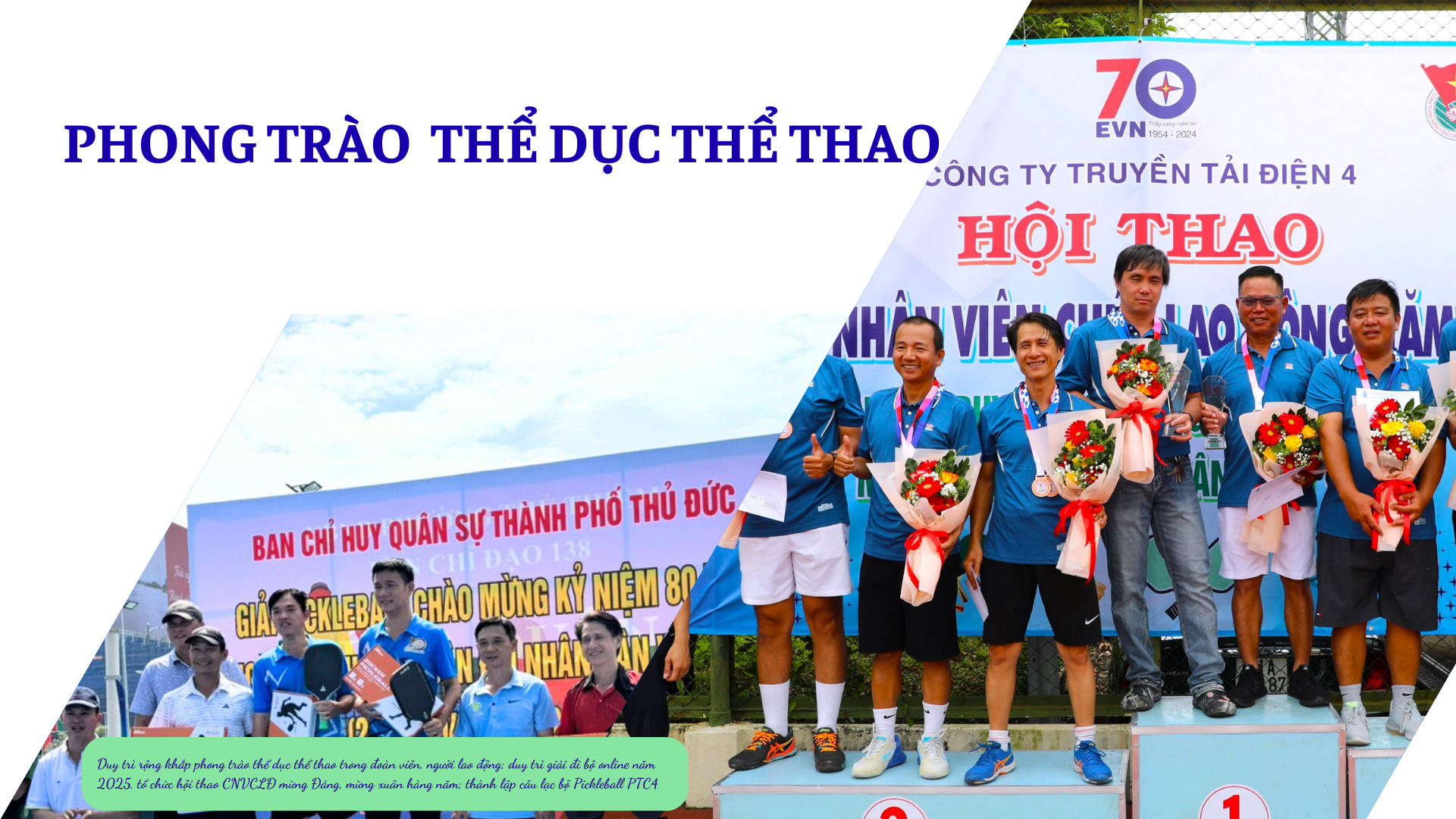 Duy trì giải đi bộ online cả năm, Hội thao mừng Xuân, thành lập CLB Pickleball PTC4 và hỗ trợ cơ sở vật chất thể thao. Nhiều hoạt động văn – thể – mỹ tạo không khí đoàn kết, gắn bó, giúp người lao động tái tạo năng lượng.