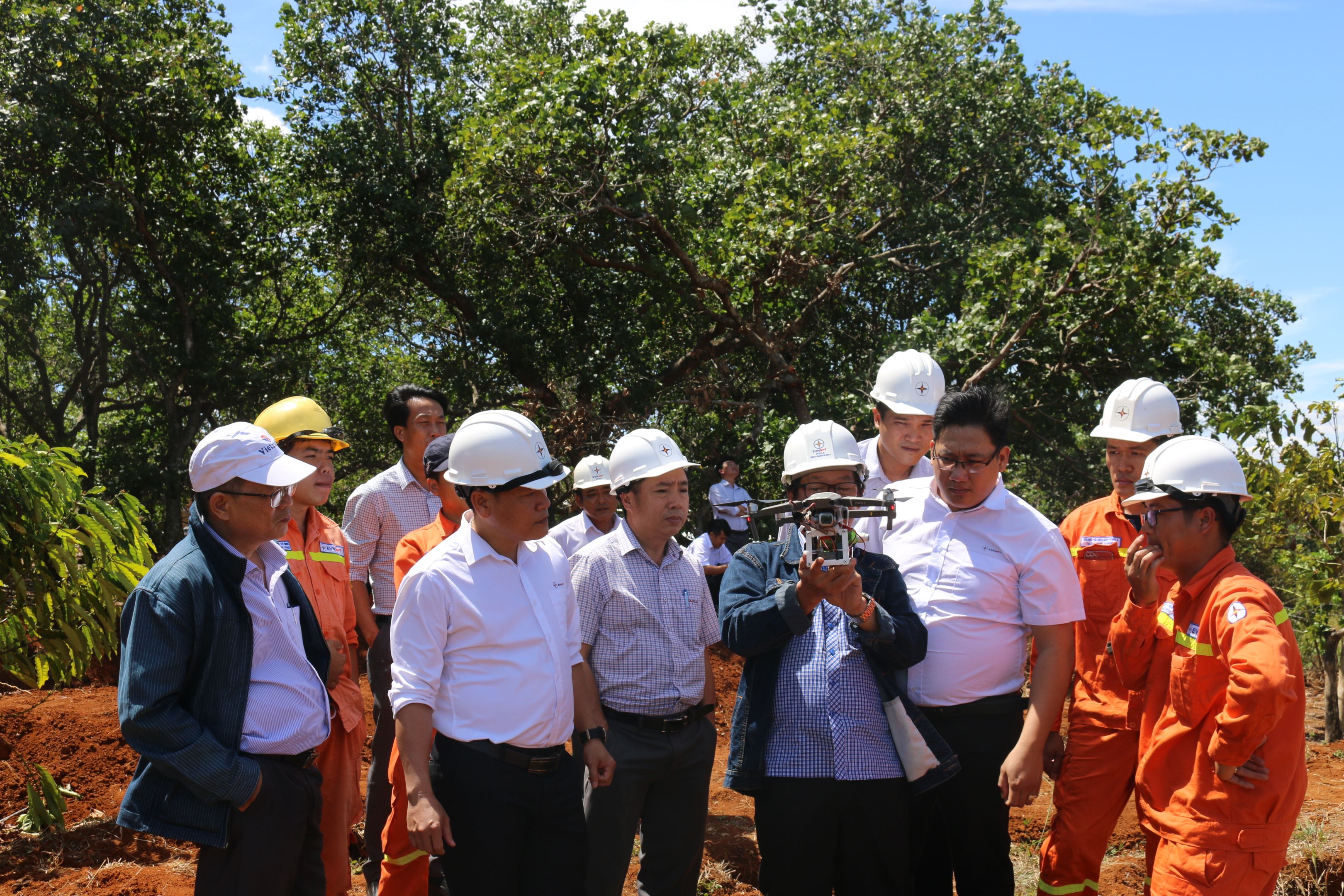 Đồng chí Bùi Văn Hoàng hướng dẫn sử dụng flycam trong quản lý vận hành đường dây.