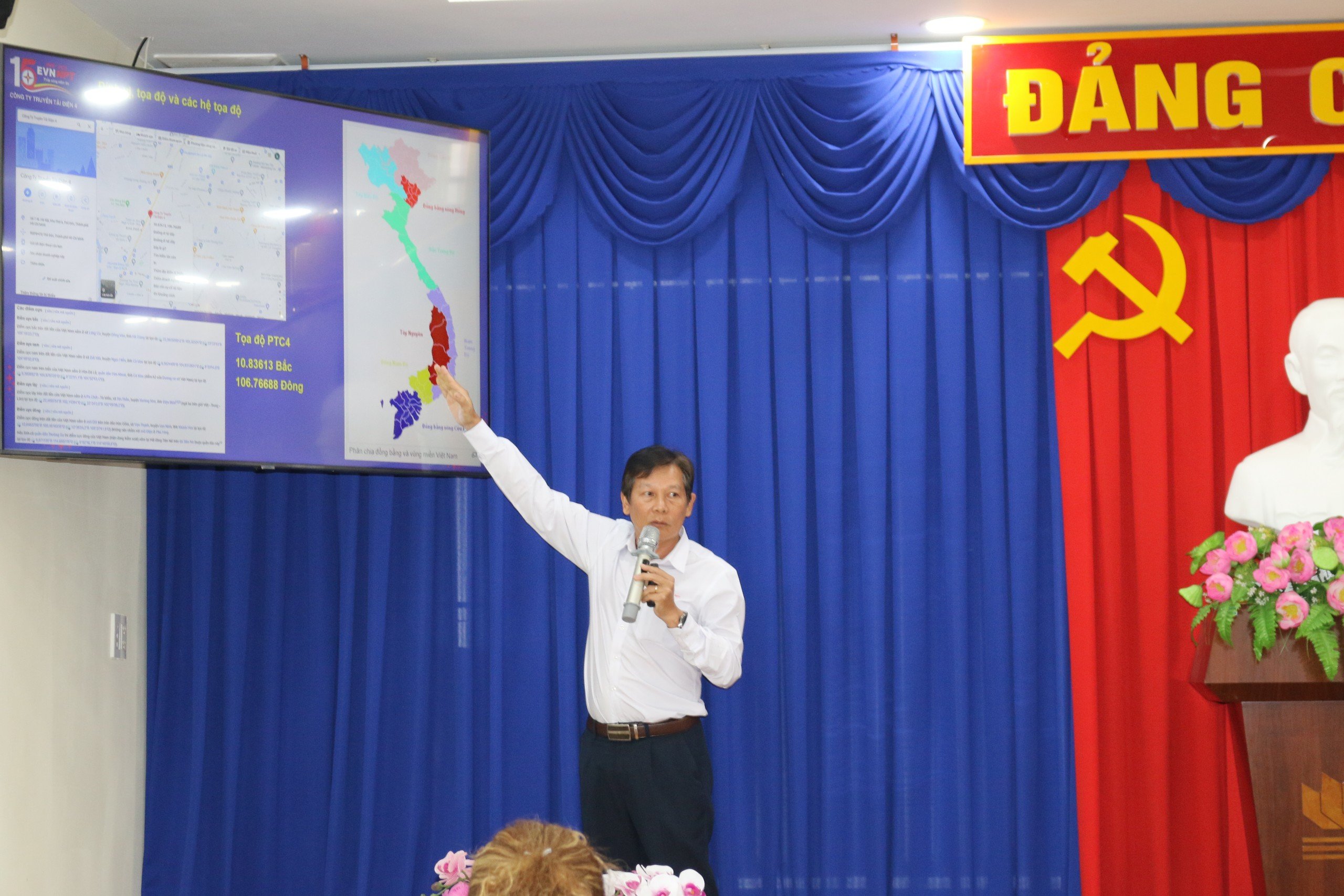 Đồng chí Bùi Văn Hoàng- Giám đốc Truyền tải điện miền Đông 2 trình bày tại hội thảo đẩy mạnh việc ứng dụng UAV vào kiểm tra đường dây do Truyền tải điện miền Đông 2 tổ chức