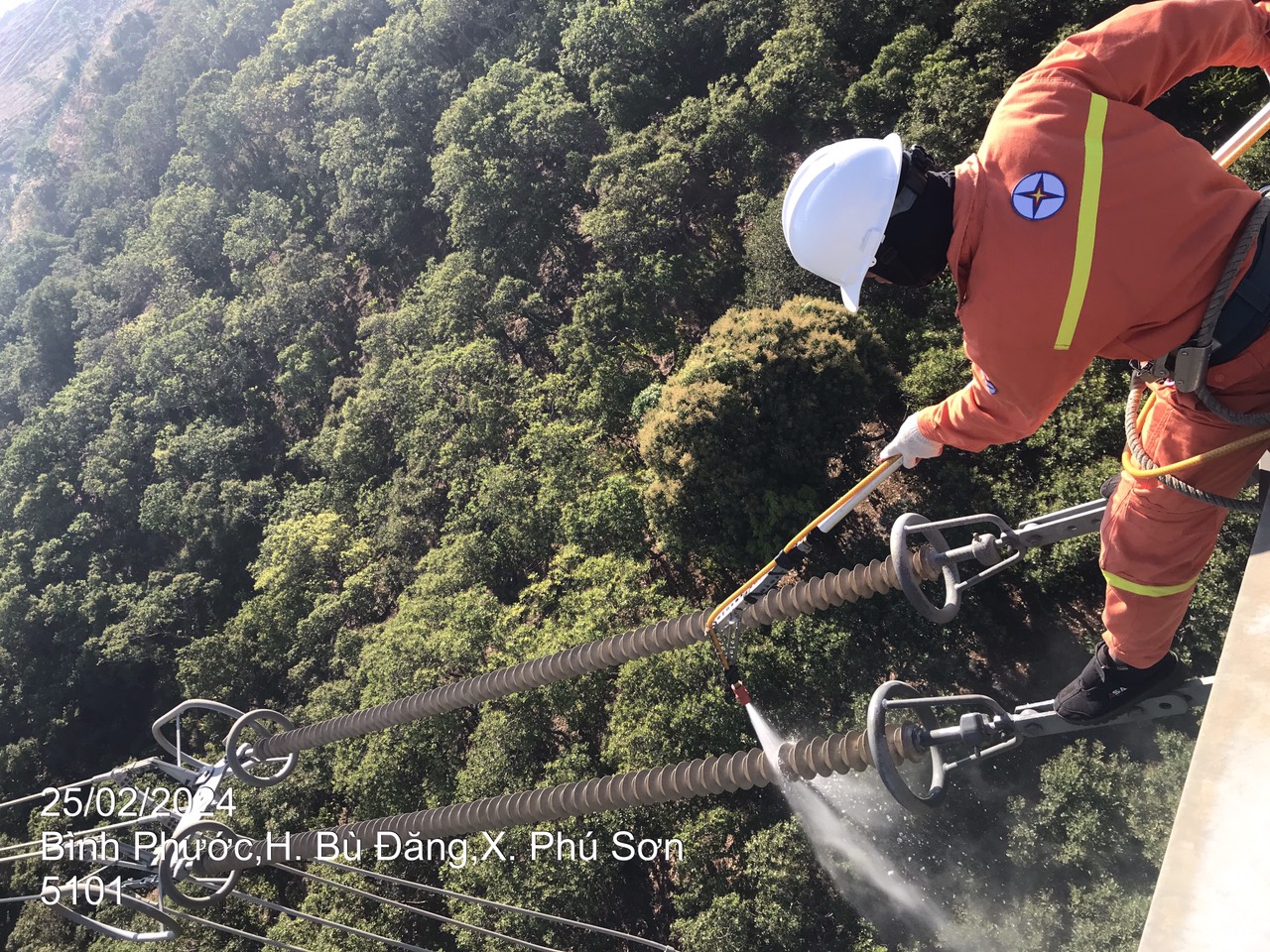 Ứng dụng máy áp lực cao để vệ sinh sứ khi cắt điện trên đường dây 500kV mạch 1 năm 2022.