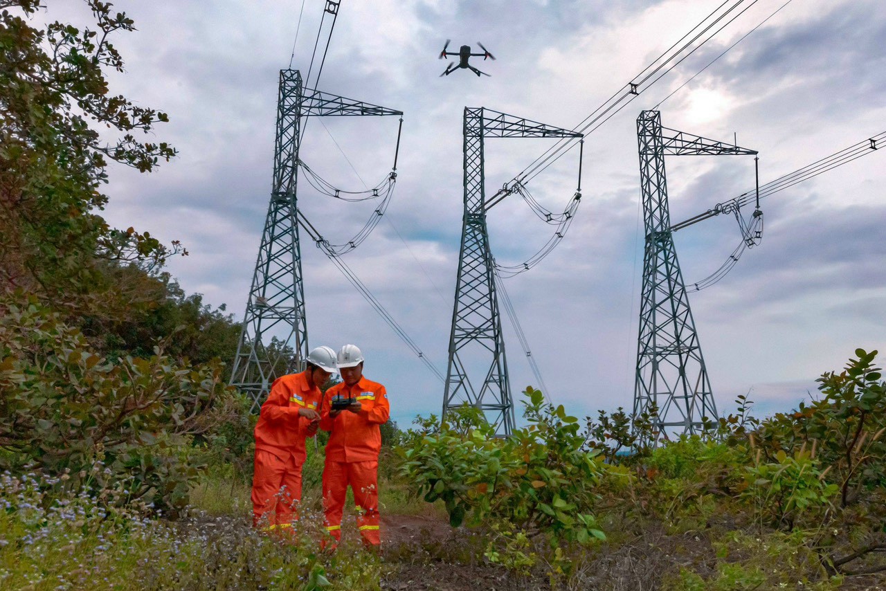 Ứng dụng công nghệ thiết bị bay flycam kiểm tra vận hành đường dây 500kV Đắk Nông - Cầu Bông năm 2023.