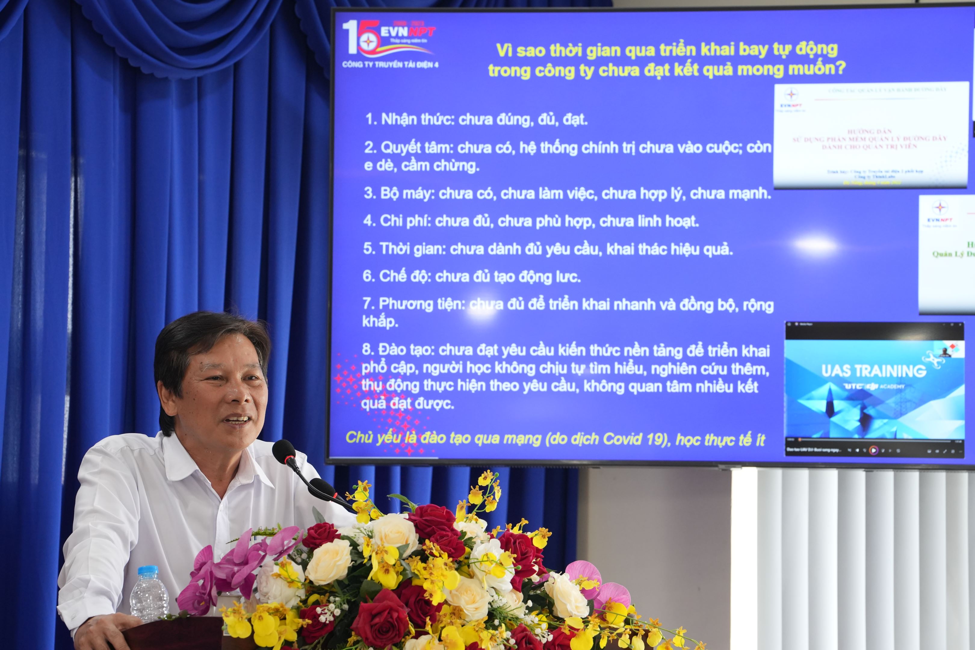 Anh Bùi Văn Hoàng - Giám đốc Truyền tải điện miền Đông 2 trực tiếp đứng lớp hướng dẫn sử dụng thiết bị UAV trong công tác QLVH đường dây và trạm biến áp