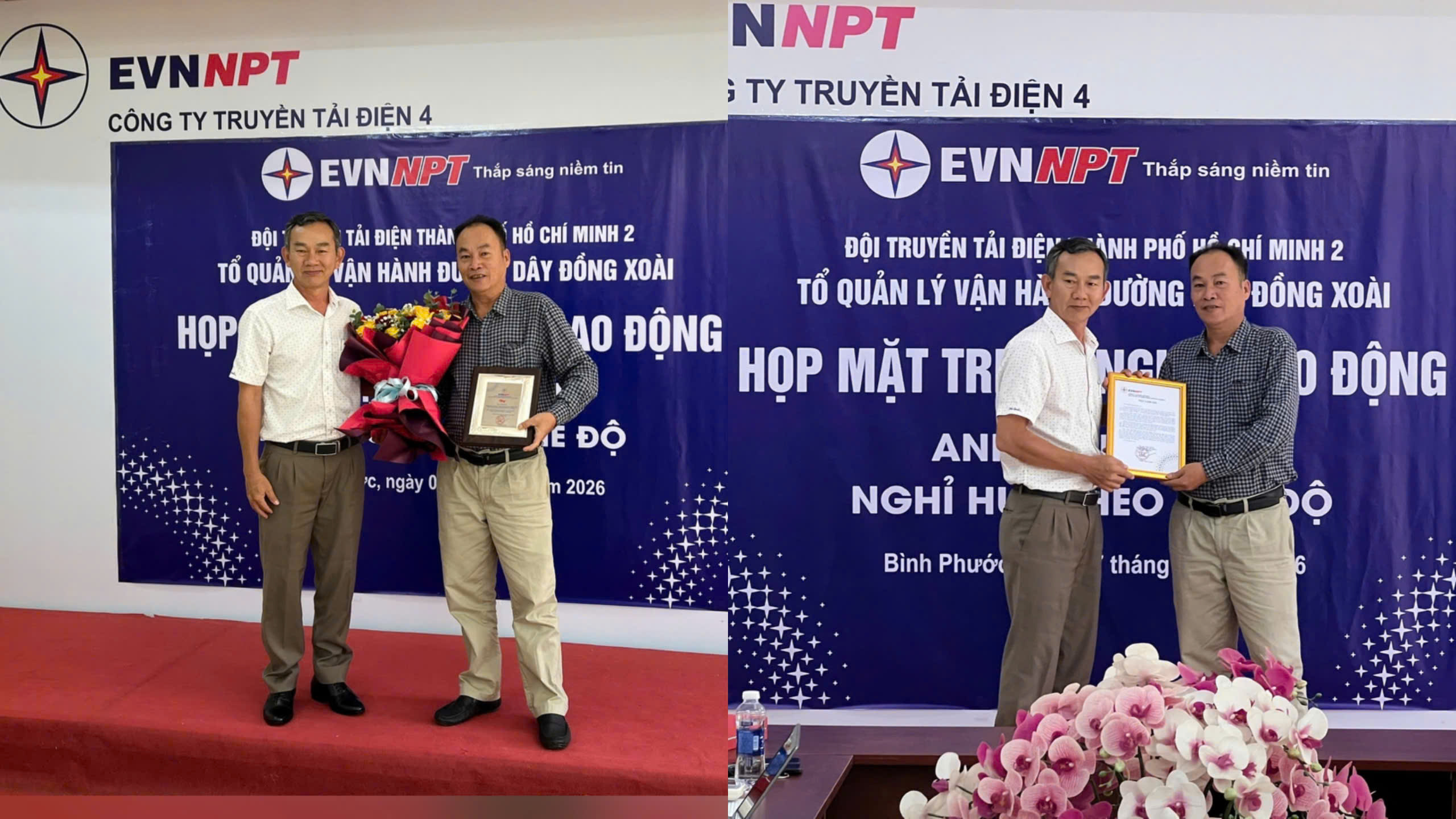 Tham dự buổi gặp mặt có đồng chí Trịnh Đình Chính – Bí thư Chi bộ, Đội trưởng Đội Truyền tải điện Thành phố Hồ Chí Minh 2; cùng các đồng chí trong Ban lãnh đạo Đội. Về phía đơn vị có đồng chí Bùi Văn Vương – Ủy viên Ban Chấp hành Chi bộ, Tổ trưởng Tổ Quản lý vận hành đường dây Đồng Xoài và toàn thể cán bộ công nhân viên trong Tổ.