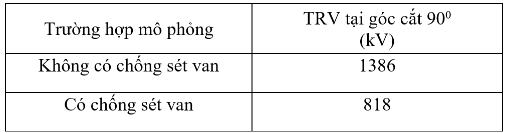 Kết quả mô phỏng TRV sau khi áp dụng giải pháp lắp đặt chống sét van được cho trong Bảng 6: