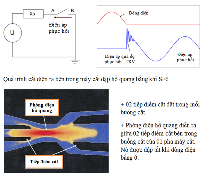 Khi mở máy cắt kháng bù ngang, tại thời điểm dòng điện dao động, một lượng năng lượng được nạp bởi thành phần điện cảm và điện dung của cuộn kháng bù ngang trước thời điểm cắt kháng, năng lượng này sẽ dao động giữa điện cảm và điện dung ký sinh của kháng bù ngang và tạo ra quá áp tạm thời hay còn gọi là điện áp quá độ phục hồi (Transient Recovry Voltage – TRV) [3].