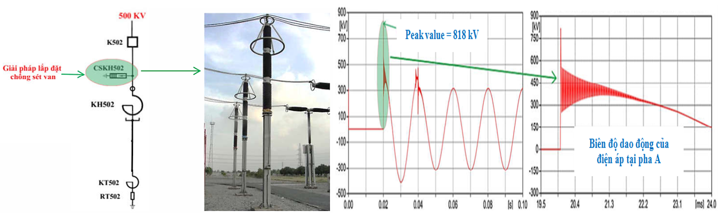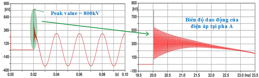 Sau khi áp dụng giải pháp lắp đặt chống sét van thì giá trị biên độ đỉnh của TRV giảm đáng kể về giá trị cho phép chịu đựng TRV của máy cắt (818 kV < 853 kV). Tuy nhiên giá trị TRV này vẫn còn khá lớn.