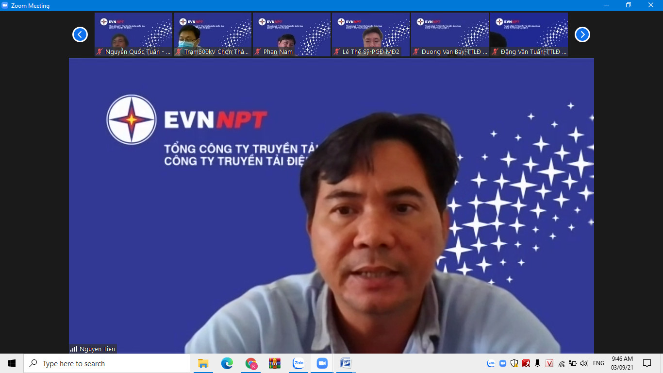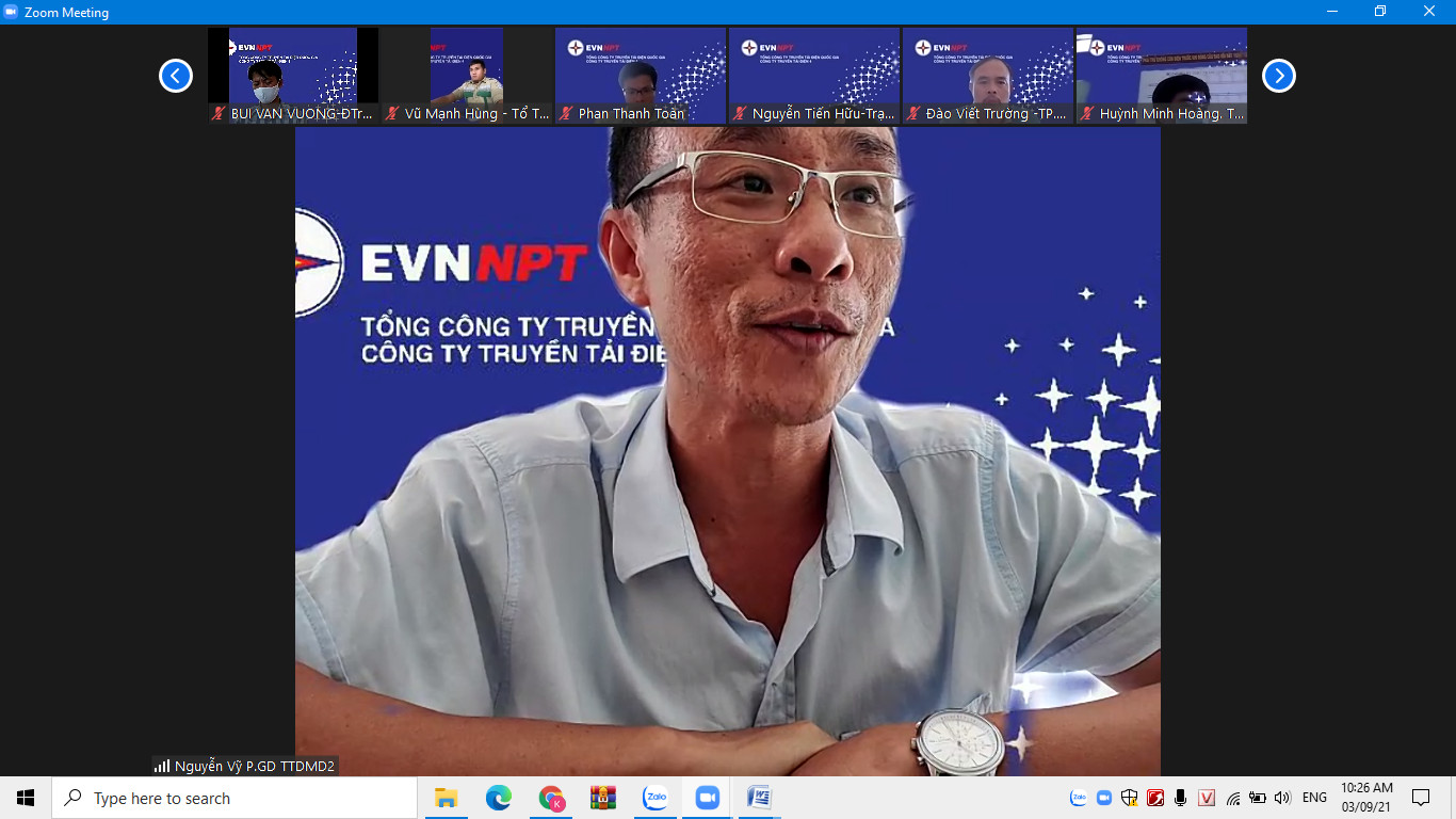 Nhằm hạn chế tối đa và kiểm soát các nguy cơ lây nhiễm SARS-CoV-2 trong toàn thể CBCNV TTĐMĐ2, đặc biệt là lực lượng quản lý vận hành TBA, Đội Truyền tải điện, Tổ xử lý sự cố đảm bảo vận hành lưới điện an toàn, ngày 4/9/2021 Tiểu Ban chỉ đạo phòng, chống dịch Covid-19 Truyền tải điện miền Đông 2 (gọi tắt là tiểu Ban chỉ đạo) đã tổ chức cuộc họp (qua Zoom meeting) với sự chủ trì của ông Nguyễn Minh Dũng - Giám đốc, Trưởng tiểu ban chỉ đạo cùng với các thành viên là trưởng các phòng, đội, trạm cùng tổ trưởng tổ an toàn covid đánh giá công tác phòng, chống dịch Covid-19, nêu ra những khó khăn đồng thời đề ra các giải pháp thực hiện và đúc kết một số bài học  kinh nghiệm để có những chỉ đạo kịp thời, phù hợp, sát với diễn biến tình hình dịch bệnh.