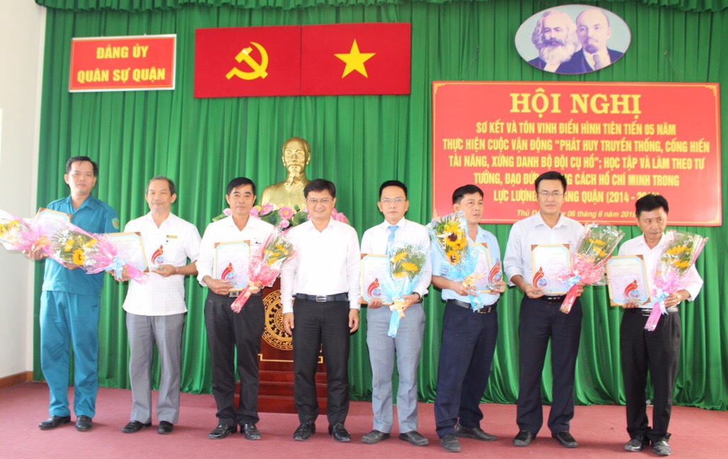 Ngày 06/6/2019, tại trụ sở Ban Chỉ huy quân sự quận Thủ Đức, Thành phố Hồ Chí Minh, Đảng ủy quân sự Quận đã tổ chức Hội nghị sơ kết và tôn vinh điển hình tiên tiến 05 năm thực hiện cuộc vận động “Phát huy truyền thống, cống hiến tài năng, xứng danh Bộ đội Cụ Hồ”, học tập và làm theo tư tưởng, đạo đức, phong cách Hồ Chí Minh trong lực lượng vũ trang quận (2014 – 2019). Hội nghị nhằm đánh giá ưu điểm, hạn chế, nguyên nhân và rút ra bài học kinh nghiệm; bổ sung biện pháp lãnh đạo, chỉ đạo, không ngừng nâng cao kết quả thực hiện Cuộc vận động gắn với việc thực hiện Chỉ thị số 05-CT/TW ngày ngày 15/5/2016 của Bộ Chính trị, thiết thực kỷ niệm 50 năm thực hiện Di chúc của Chủ tịch Hồ Chí Minh.