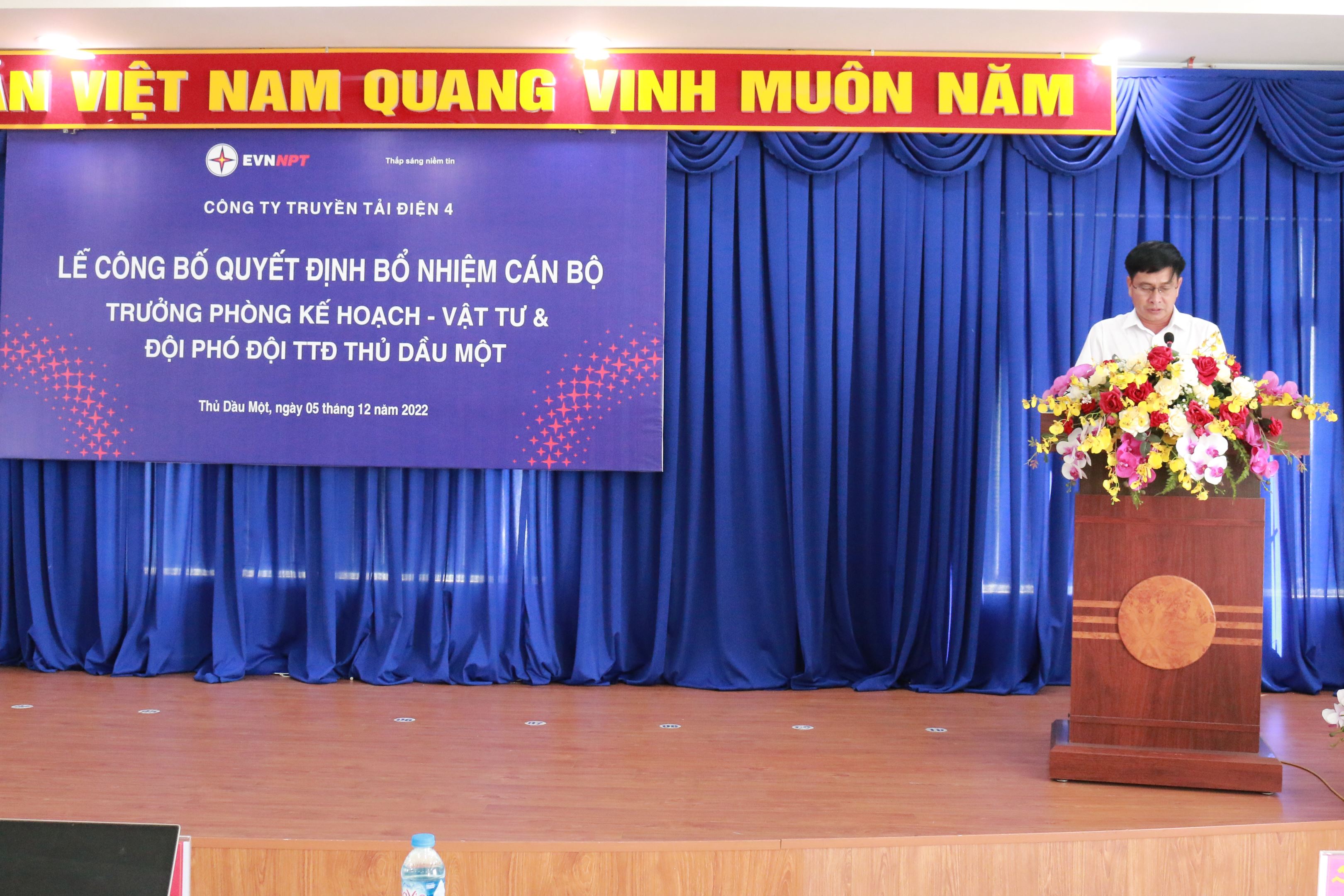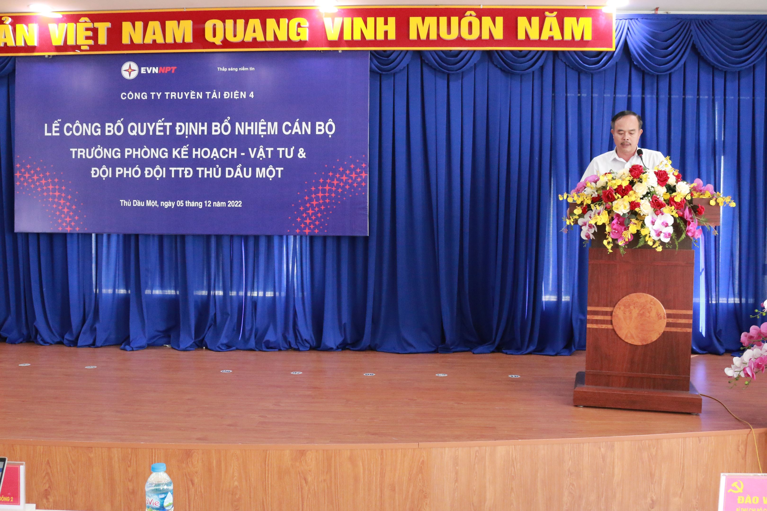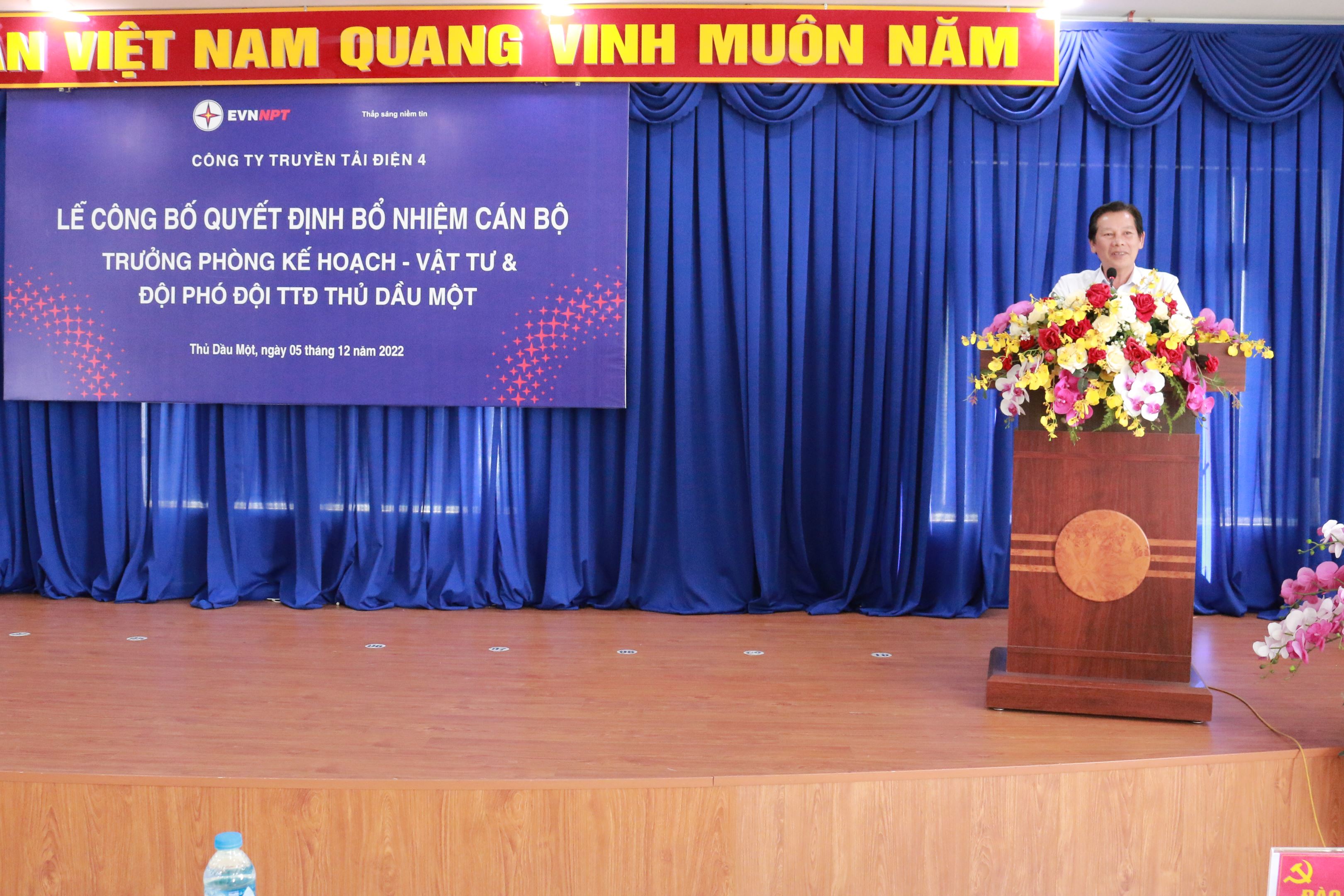 Tại buổi lễ, ông Đào Viết Trường –Trưởng phòng Tổng hợp đã công bố Quyết định số 8716/QĐ-PTC4 ngày 29/11/2022 bổ nhiệm ông Nguyễn Văn Tiến Trưởng trạn 500kV Tân Uyên giữ chức vụ Trưởng Phòng Kế hoạch - Vật tư thuộc TTĐ miền Đông 2 kể từ ngày 02/12/2022. Quyết định số 8718/QĐ-PTC4 ngày 29/11/2022 bổ nhiệm ông Phan Công Khiêm - cán bộ kỹ thuật giữ chức Đội phó Đội TTĐ Thủ Dầu Một thuộc TTĐ miền Đông 2 kể từ ngày 02/12/2022 thời hạn bổ nhiệm là 05 năm.