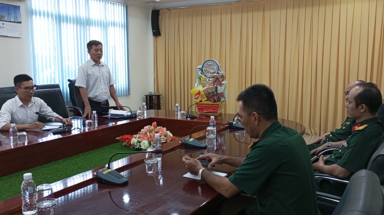 Tiếp và báo cáo làm việc với Đoàn công tác có đồng chí Nguyễn Văn Bảy – Phó Giám đốc, Chỉ huy trưởng Ban Chỉ huy quân sự Công ty Truyền tải điện 4 cùng các đồng chí trong Ban Chỉ huy và 01 Tiểu đổi tự vệ khu vực cơ quan Công ty.