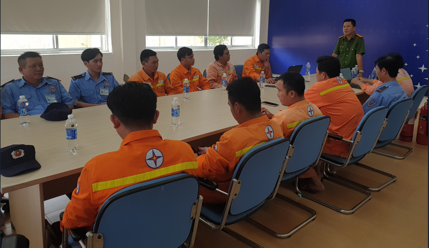 Về nghiệp vụ công tác cứu nạn cứu hộ, đồng chí cảnh sát PCCC&CNCH đã bồi huấn các quy định như Nghị định số 83/2017/NĐ-CP, kiến thức về công tác CNCH tại cơ sở và hướng dẫn cho CBCNV các tư thế vận chuyển nạn nhân bị thương ra khỏi vùng nguy hiểm đến nơi an toàn như: dìu, kéo, cổng, vác nạn nhân; Hướng dẫn cách xử lý khi người bị tai nạn, từng trường hợp tình trạng nạn nhân mà đưa ra các biện pháp cứu phù hợp như: tai nạn trong thao tác, té ngã trong công tác phòng chống thiên tai, tai nạn trong công tác trên đường dây.