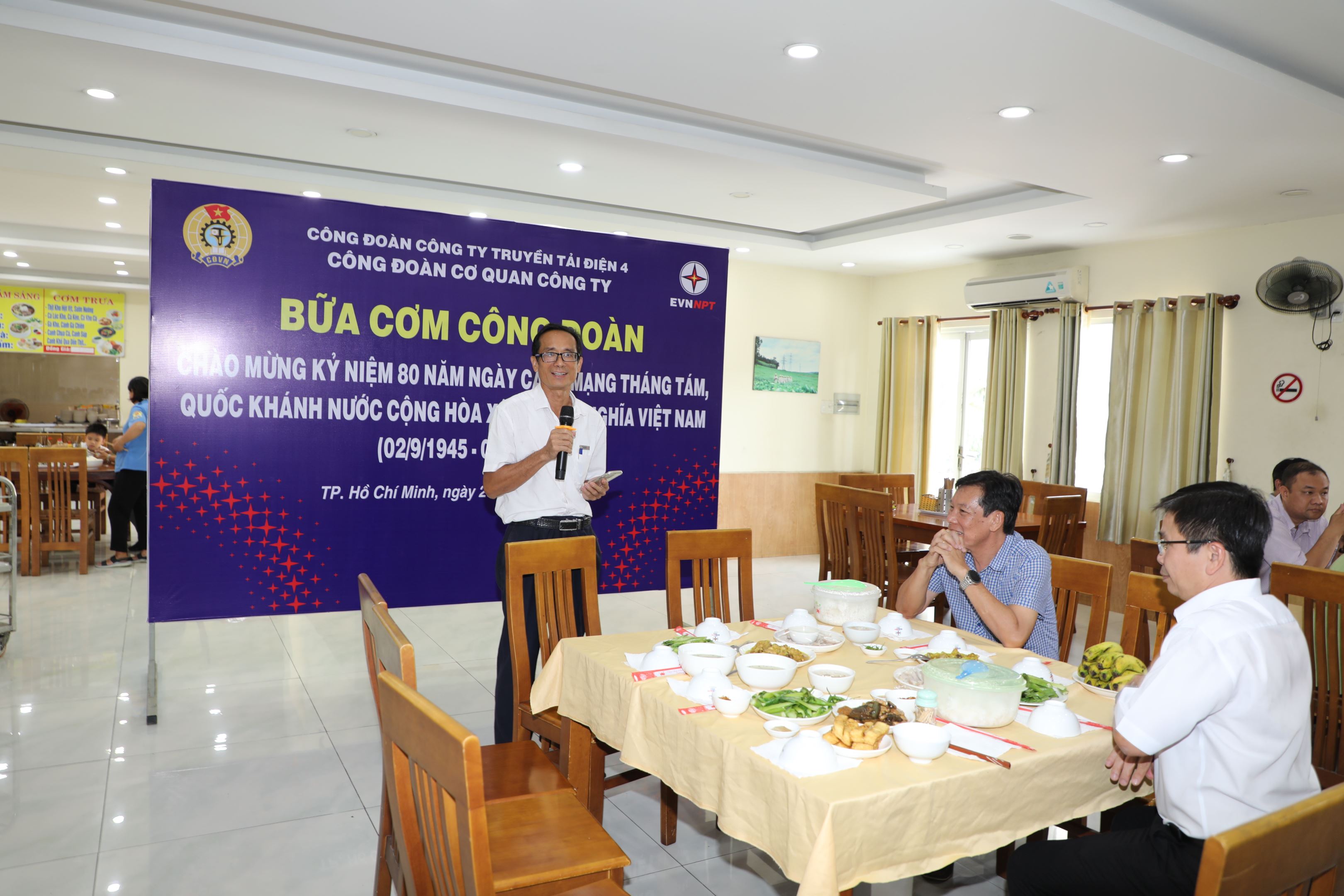 Phát biểu tại buổi gặp gỡ, đại diện lãnh đạo Công ty, Ông Nguyễn Phương Nam - Chủ tịch Công đoàn Công ty ghi nhận nỗ lực của tập thể CBCNV Cơ quan Công ty trong thời gian qua, đồng thời nhấn mạnh “Bữa cơm Công đoàn” không chỉ là bữa ăn ấm cúng thường nhật mà còn là dịp để tăng cường sự gắn bó, chia sẻ, thắt chặt tình đoàn kết trong tập thể, qua đó góp phần tạo nên sức mạnh chung để hoàn thành tốt nhiệm vụ sản xuất, kinh doanh của Công ty.