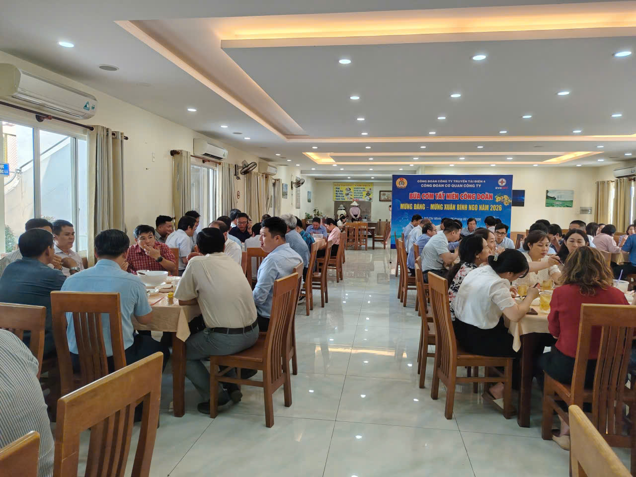 Bữa cơm có sự tham dự của Ban lãnh đạo Công ty cùng toàn thể đoàn viên Công đoàn Cơ quan Công ty. Sự hiện diện của lãnh đạo vừa là sự quan tâm, vừa là nguồn động viên tinh thần to lớn đối với cán bộ, đoàn viên, người lao động trong Cơ quan.