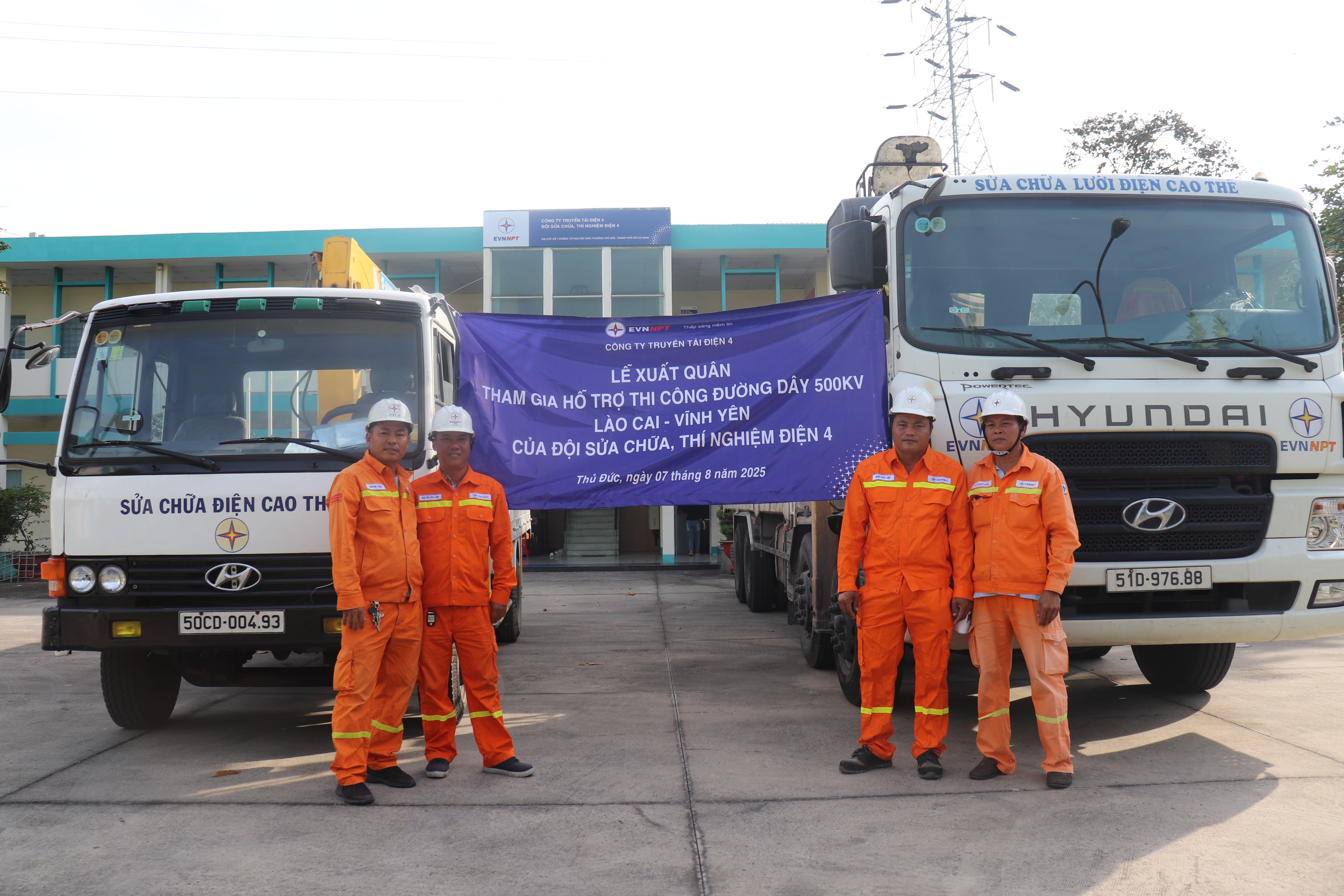 Để động viên tinh thần trước khi lên đường làm nhiệm vụ, Công đoàn và Ban lãnh đạo Đội SCTNĐ4 đã tổ chức buổi xuất quân, khích lệ tinh thần các anh khi tham gia hỗ trợ dự án đường dây 500 kV Lào Cai – Vĩnh Yên. Với quyết tâm viết tiếp những trang sử trong ngành điện, trở thành biểu tượng của sự chuyên nghiệp, gắn kết, kỷ luật và cống hiến không ngừng nghỉ của những người lính truyền tải điện trên mọi miền Tổ quốc, sự tham gia của CBCNV Đội Sửa chữa, Thí nghiệm điện 4 không chỉ minh chứng cho tinh thần đoàn kết, sẵn sàng đồng hành cùng Công ty hoàn thành mục tiêu chung, mà còn góp phần đưa dự án về đích an toàn, hiệu quả.