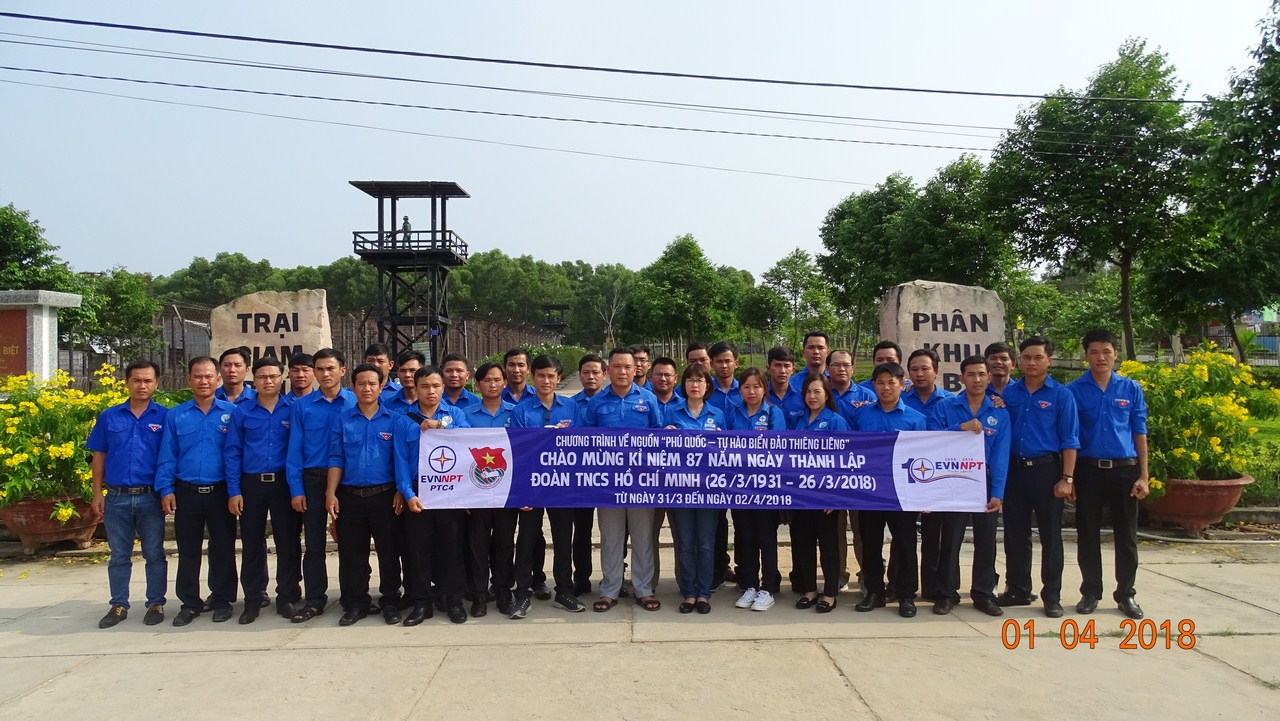 Đồng chí Lý Minh Hằng, UV BTV đoàn EVNNPT chụp hình lưu niệm cùng với Đoàn Thanh niên PTC4