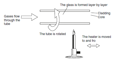 Giai đoạn 1: Một ống thủy tinh rỗng được đốt nóng ở nhiệt độ 15000C với hỗn hợp khí oxygen và metal. Phản ứng hóa học sẽ xảy ra và lớp hồ thủy tinh sẽ bị phân hủy bên trong ống. Trong lúc đốt nóng, ống thủy tinh sẽ được quay trên trục của nó với một nguồn nhiệt di động tới lui dọc theo ống nhằm bảo đảm lớp hồ thủy tinh được tạo ra có độ dày cố định. Lớp đầu tiên sẽ hình thành lớp vỏ bọc của sợi quang. Bằng cách thay đổi thành phần khí đưa vào để thay đổi chiết suất tạo nên lõi của sợi quang. Hình 3.4 mô tả tiến trình thuộc giai đoạn 1.