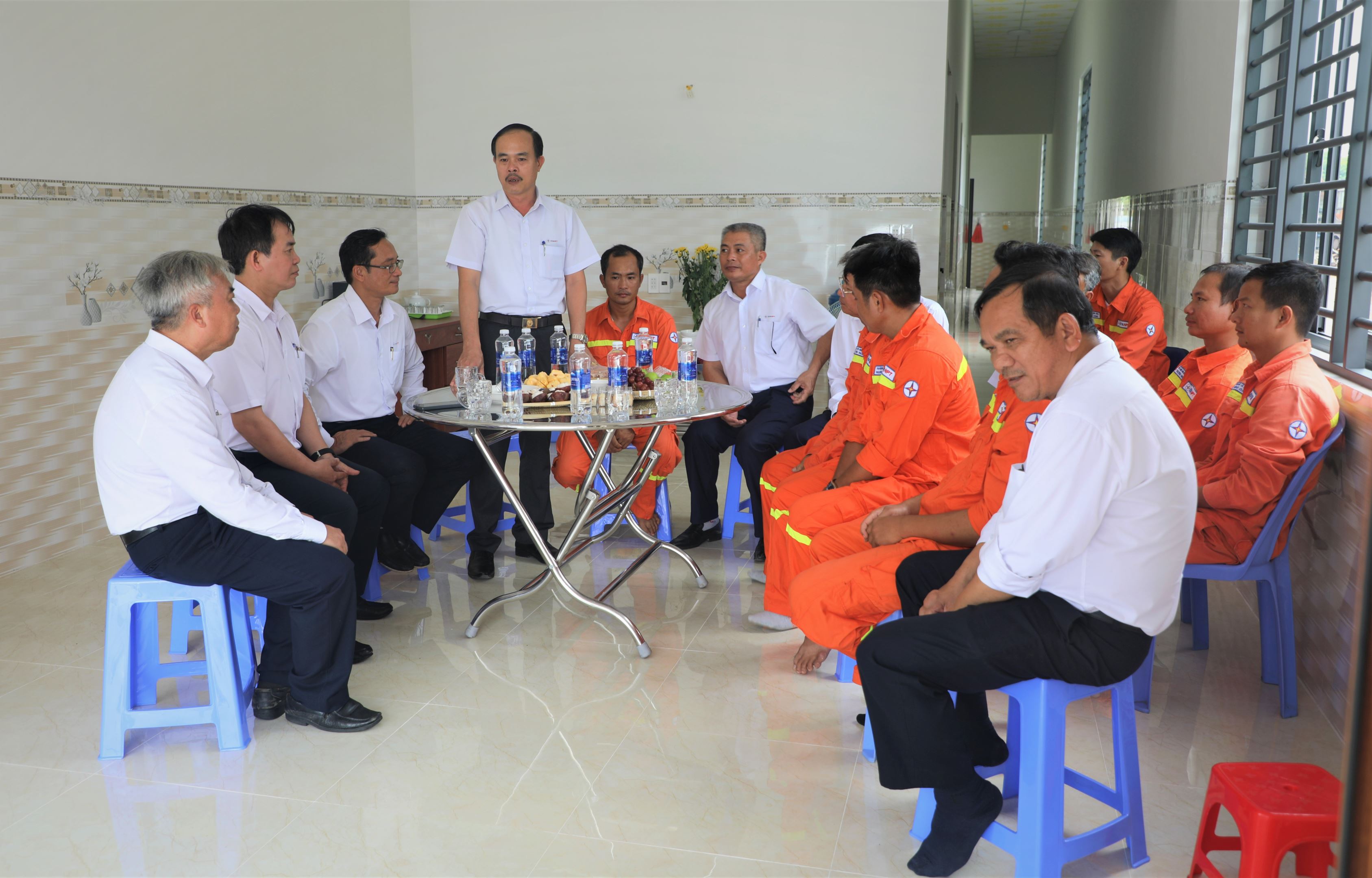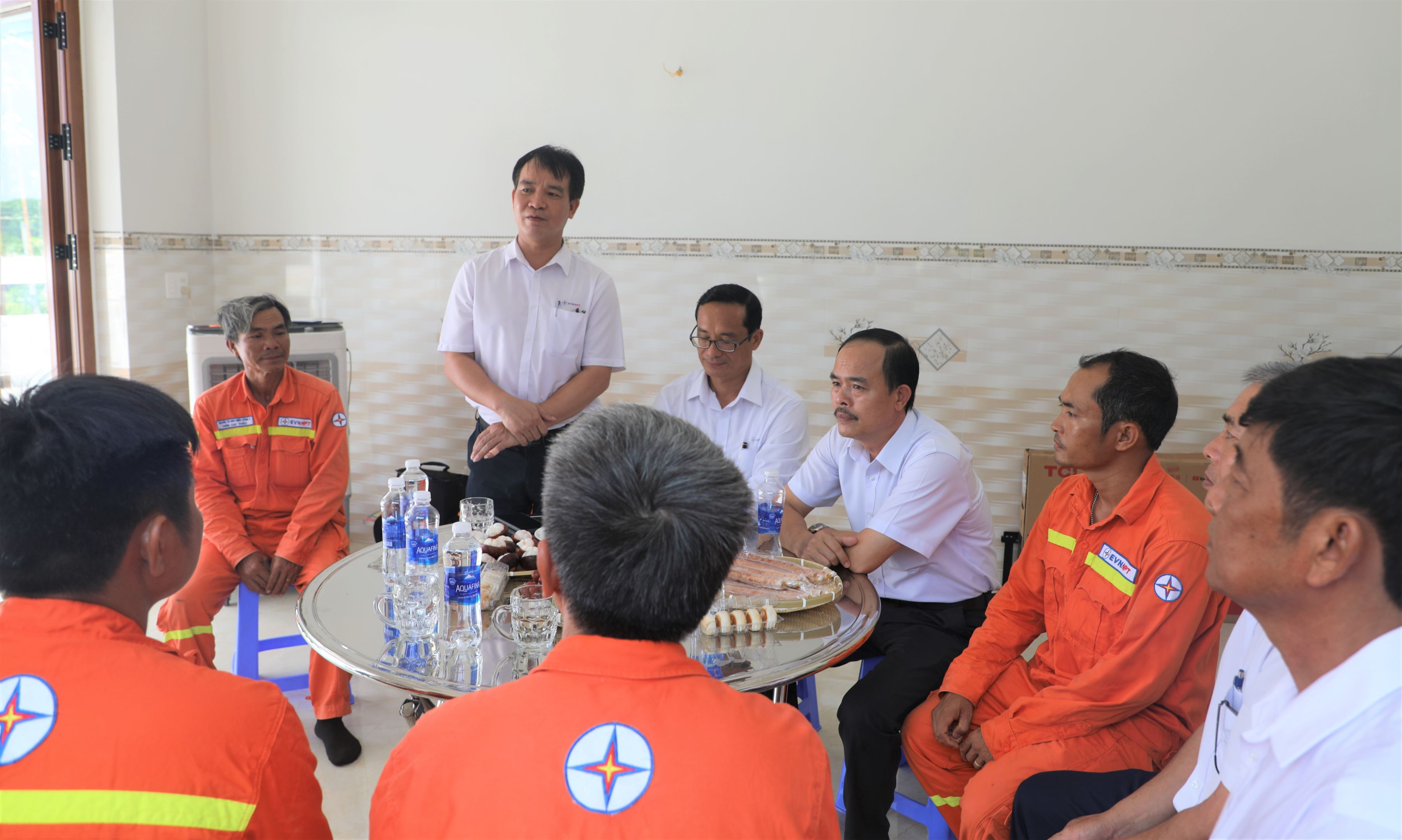 Đến trao nhà “Mái ấm công đoàn” cho gia đình đoàn viên Vũ Văn Thủy có Ông Nguyễn Hoàng Sơn, UVBCH Công đoàn EVNNPT; Ông Nguyễn Phương Nam, Chủ tịch Công đoàn PTC4, Ông Đào Viết Trường, Phó Chủ tịch Công đoàn Truyền tải điện miền Đông 2 và Ông Nguyễn Văn Huân, Đội trưởng Đội Truyền tải điện Chơn Thành và Ô. Lương Ngọc Phú, Tổ trưởng Công đoàn Đội Truyền tải điện Chơn Thành.
