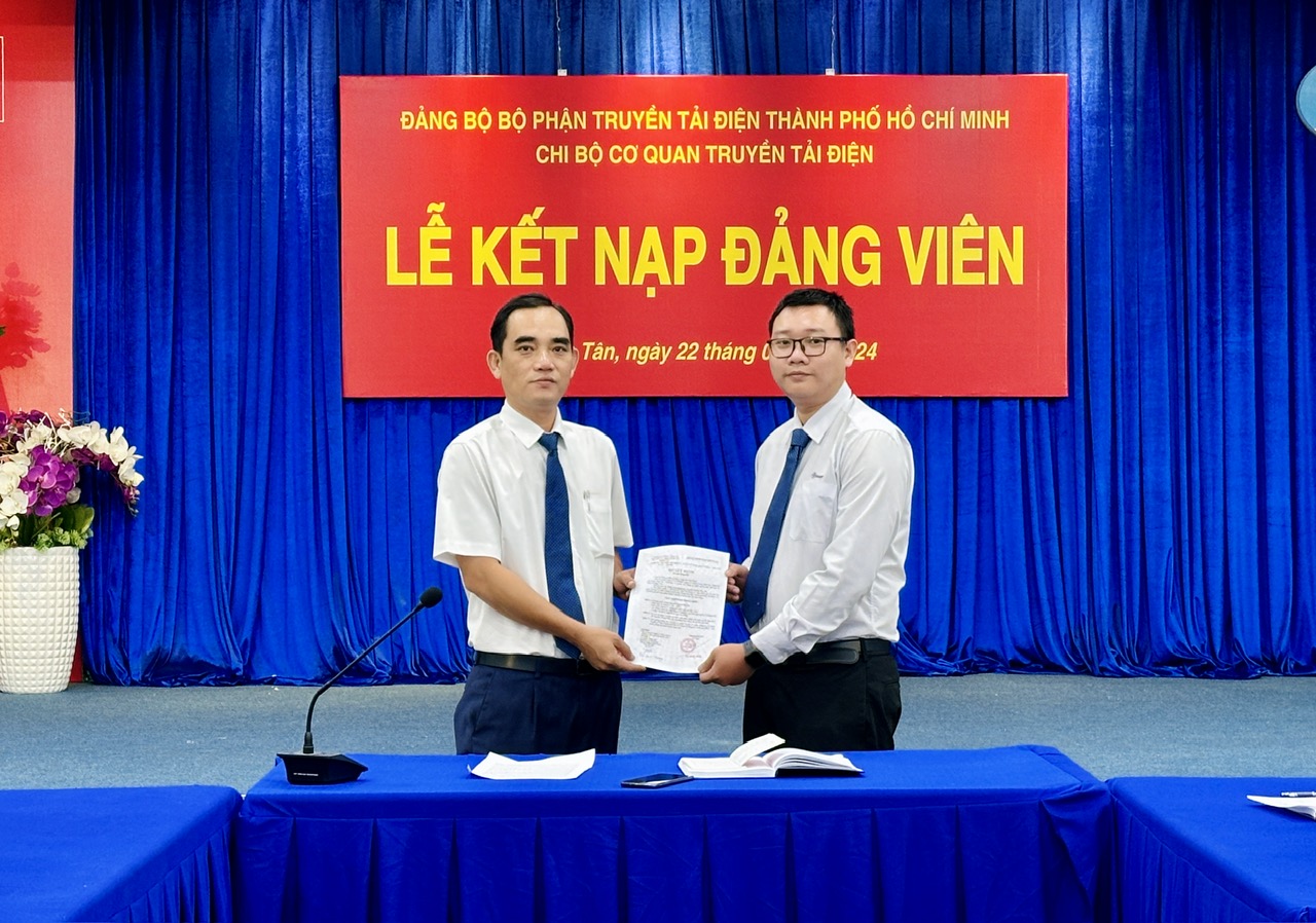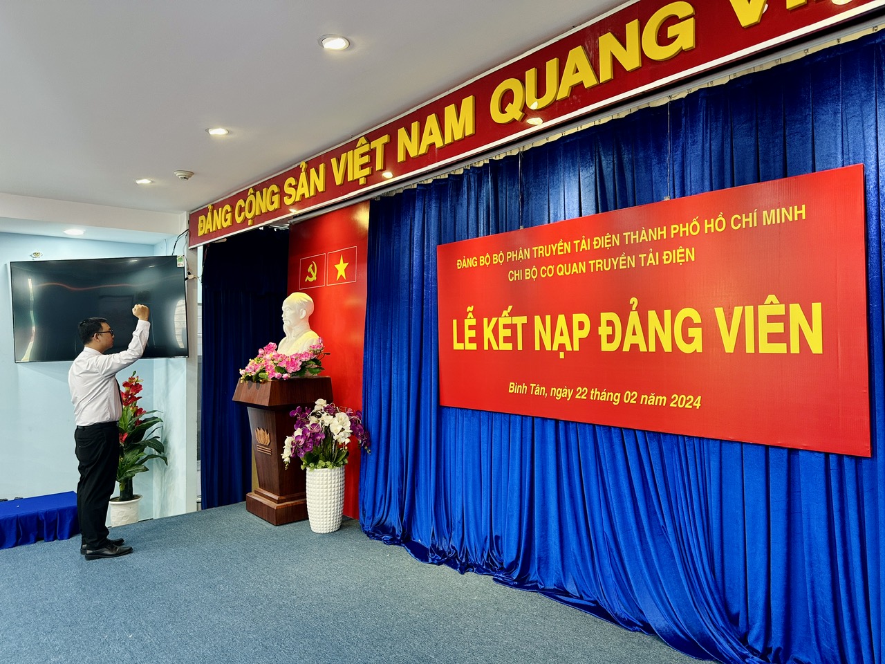 Sáng ngày 22 tháng 02 năm 2024, tại trụ sở Truyền tải điện TP. Hồ Chí Minh, Chi bộ Cơ quan Truyền tải điện Thành phố Hồ Chí Minh (TTĐ.HCM) đã tổ chức kết nạp đảng viên mới cho đồng chí Nguyễn Dương Tấn Tài, đây là một Đoàn viên thanh niên ưu tú, có phẩm chất chính trị, đạo đức tốt, nhiệt tình trong các hoạt động đoàn thể, gương mẫu, trách nhiệm trong công tác chuyên môn. Sau một thời gian phấn đấu, rèn luyện dưới sự theo dõi, giúp đỡ của Chi bộ, nay đã vinh dự được đứng trong hàng ngũ của Đảng.