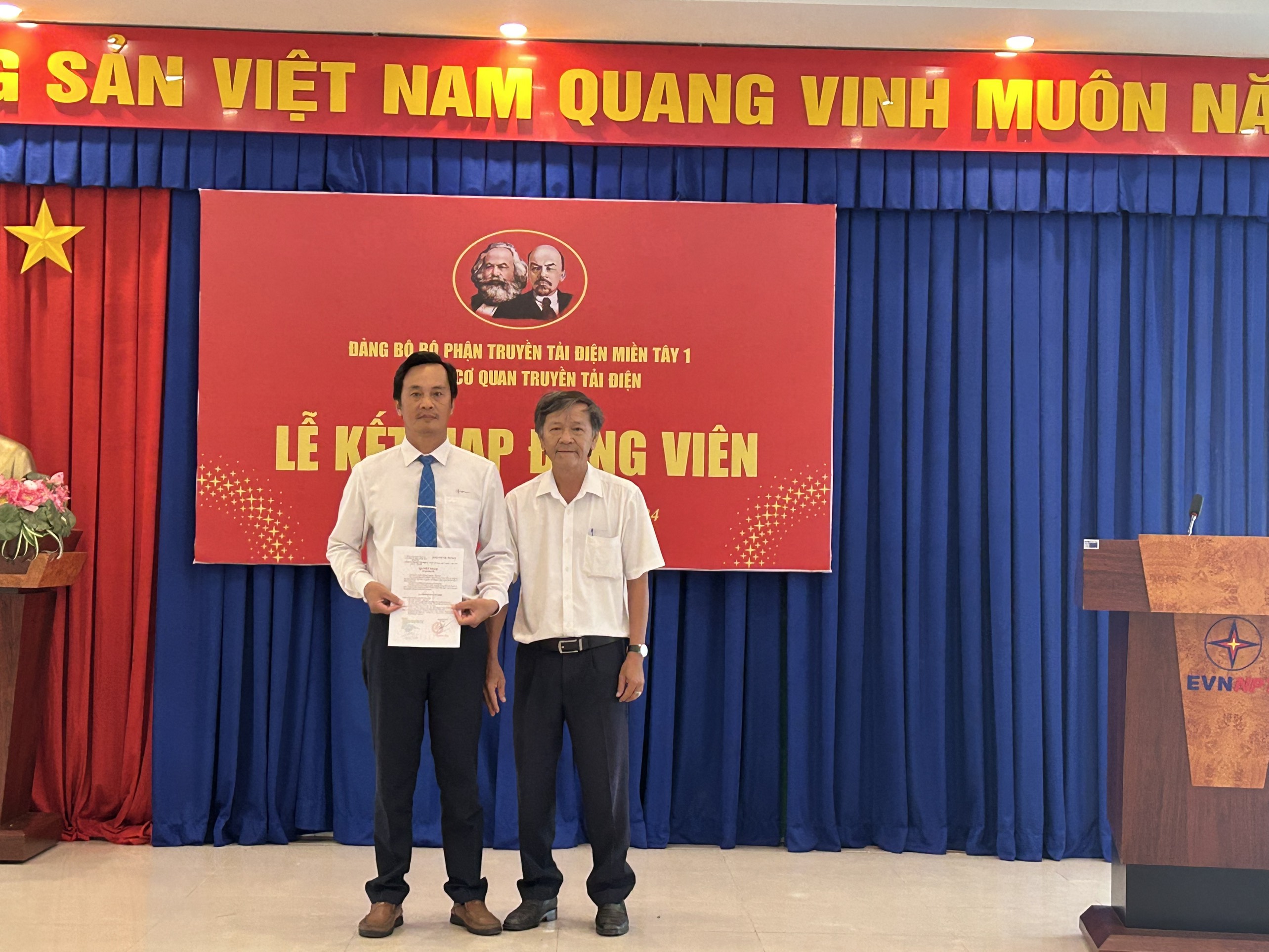 Đ/c Lê Bá Đạt - Bí thư Chi bộ Cơ quan Truyền tải điện trao quyết định kết nạp đảng cho đảng viên mới.