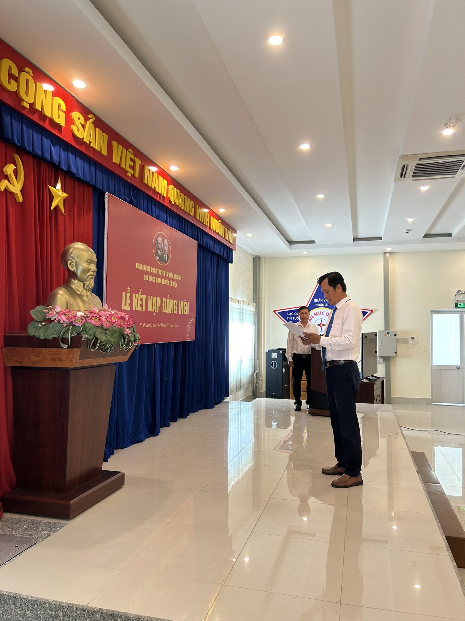 Sau nghi thức chào cờ trang nghiêm, đồng chí Lê Bá Đạt Bí thư Chi bộ thay mặt Chi bộ đọc quyết định kết nạp quần chúng ưu tú Lê Giang Sơn vào Đảng Cộng sản Việt Nam.