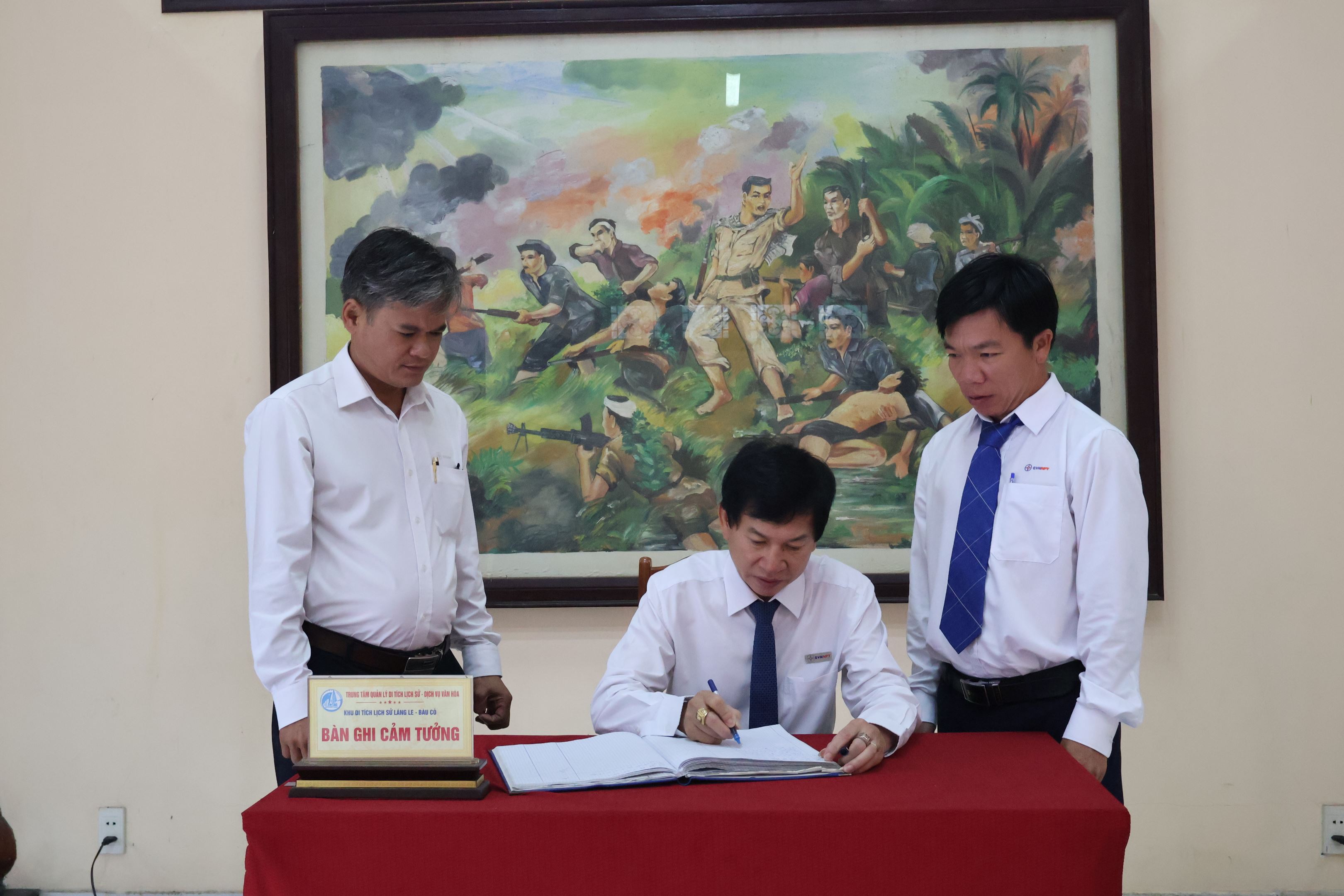 Đ/c Nguyễn Duy Trung - Bí thư chi bộ - Đội trưởng Đội Truyền tải điện Tây Ninh viết cảm tưởng vào sổ lưu niệm
