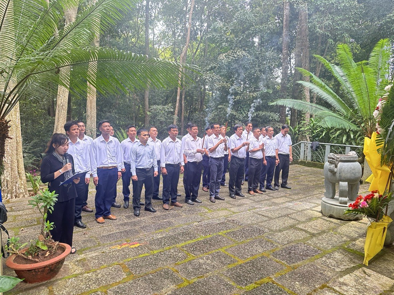 Các Đại biểu dâng hương tưởng niệm các đồng chí trong Ban Chấp hành Trung ương Cục miền Nam tại nhà truyền thống.