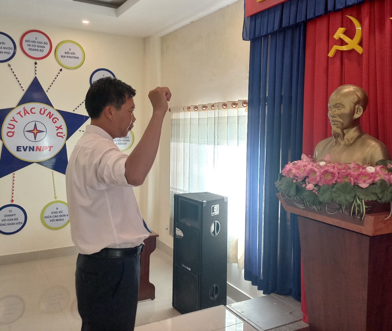 Hướng về cờ tổ quốc, cờ đảng và chân dung Chủ tịch Hồ Chí Minh, cùng sự chứng kiến của các đồng chí đảng viên trong Chi bộ, đồng chí Lê Nguyễn Quốc Bảo đã tuyên thệ lời thề của người đảng viên Đảng Cộng sản Việt Nam, hứa luôn phấn đấu làm tốt nhiệm vụ của người đảng viên, tiếp tục phấn đấu để luôn xứng đáng là người đảng viên gương mẫu, đóng góp sức mình thực hiện thành công nhiệm vụ chính trị của Chi bộ Quản lý vận hành đường dây, góp phần xây dựng Chi bộ ngày càng vững mạnh.