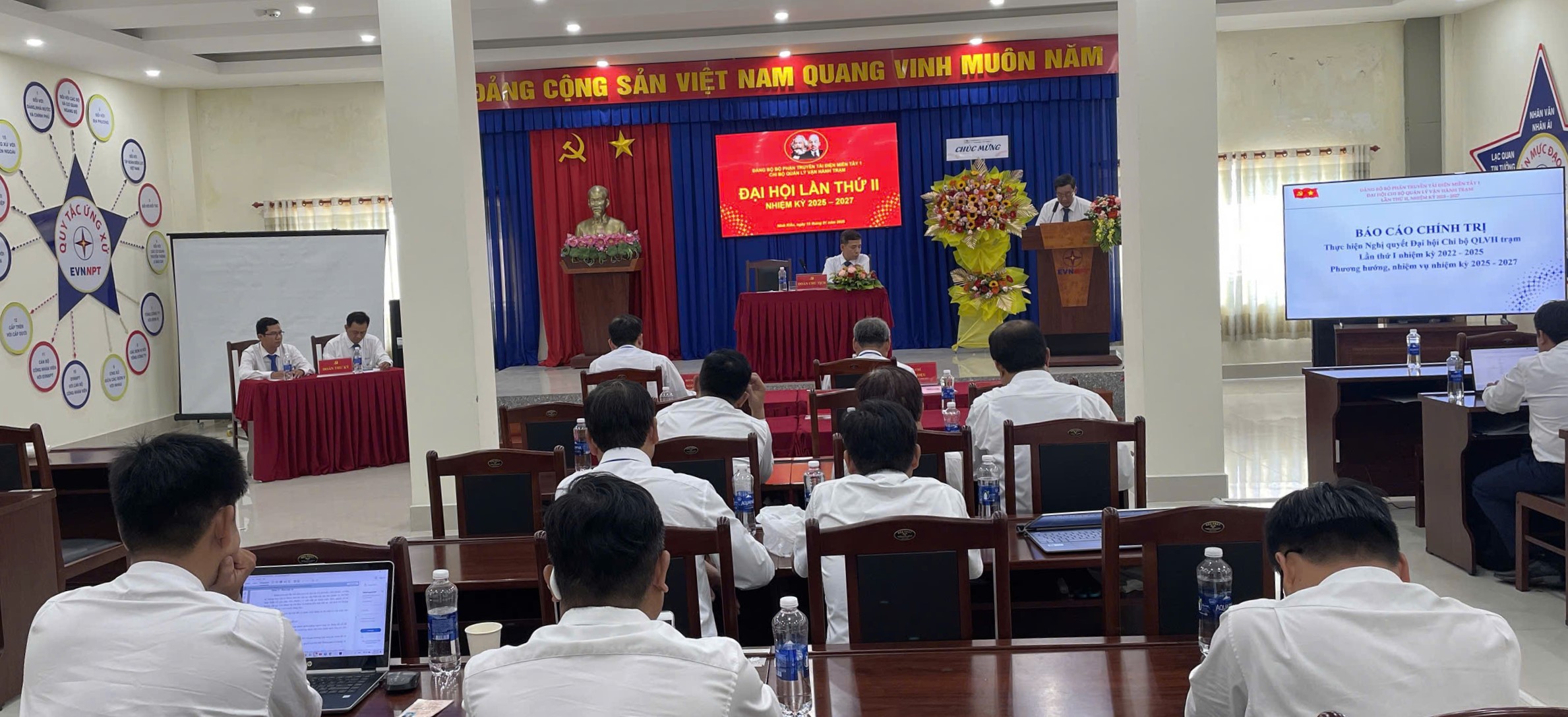 Với tinh thần dân chủ, các đại biểu đã tập trung thảo luận, bổ sung xây dựng Nghị quyết nhiệm kỳ 2025 - 2027 và bầu Ban Chấp hành Chi bộ quản lý vận hành trạm gồm 03 đồng chí. Đồng chí Trần Nhật Trung - Bí thư Chi bộ, đồng chí Phạm Tuấn Phi - Phó bí thư Chi bộ và đồng chí Võ Đông Hải - Chi ủy viên. Trong Đại hội, toàn thể Đảng viên Chi bộ đã biểu quyết thông qua nghị quyết nhiệm kỳ 2025 - 2027.