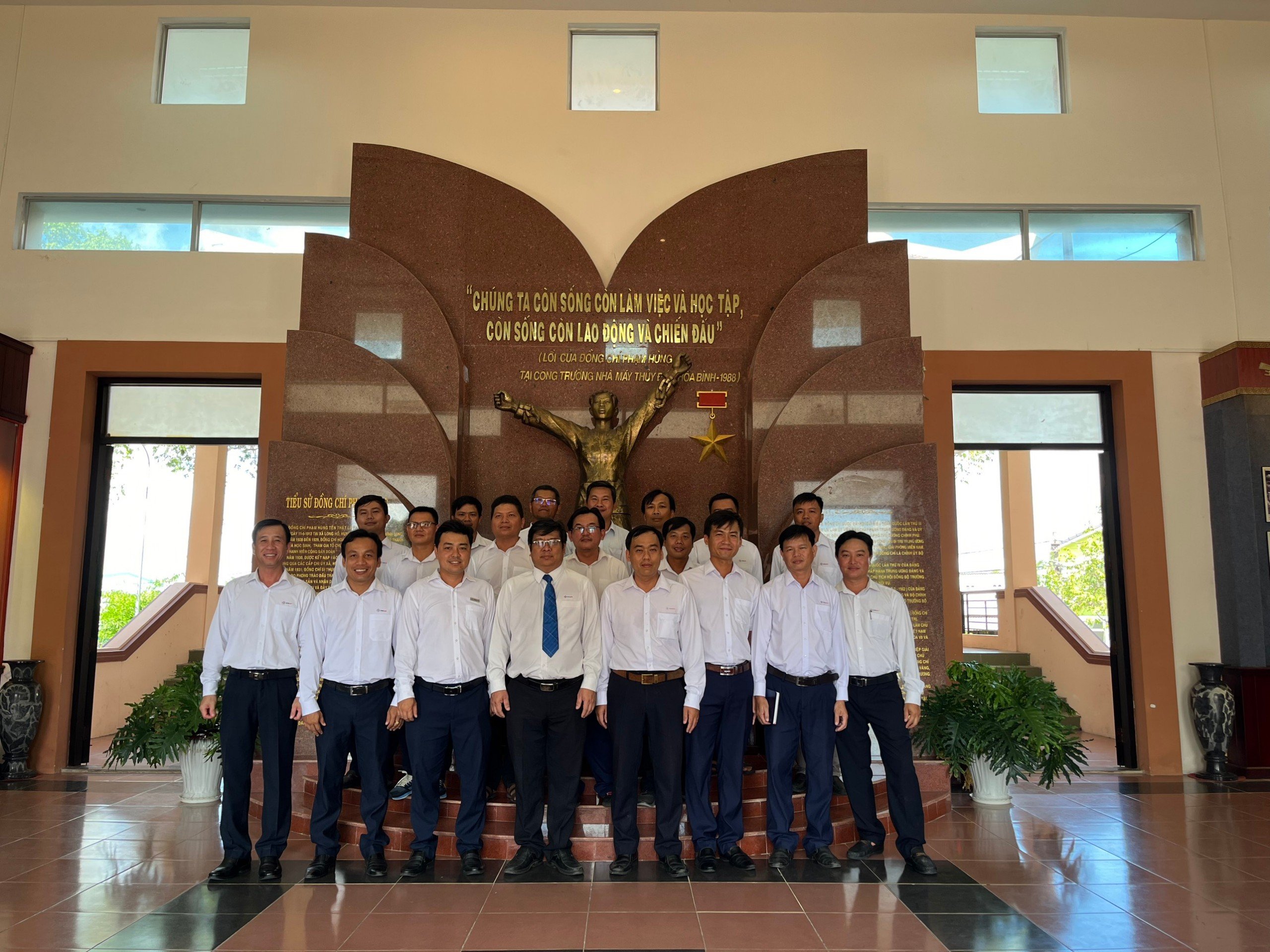 Sau lễ Kết nạp đảng viên, Chi bộ Quản lý vận hành trạm đã tổ chức tham quan và thực hiện nghi thức dâng hương tại Đền Thờ Phạm Hùng, thể hiện lòng thành kính và biết ơn của thế hệ hôm nay đối với sự hy sinh to lớn của cha ông đi trước cho sự trường tồn của dân tộc.