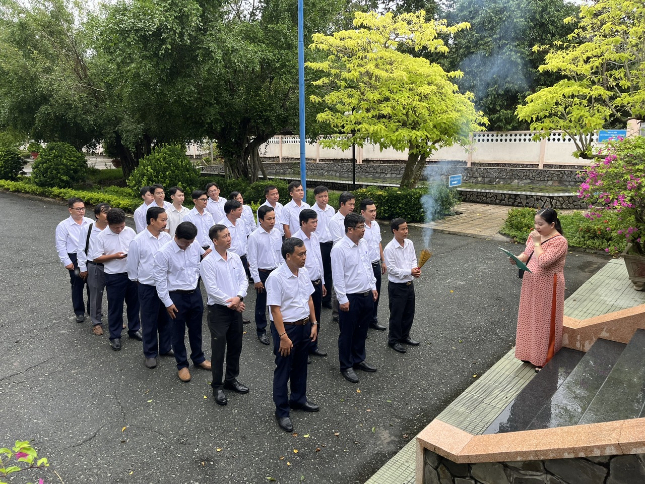 Chi bộ Quản lý vận hành trạm dâng hương và chụp ảnh lưu niệm tại Khu di tích Ấp Bắc.