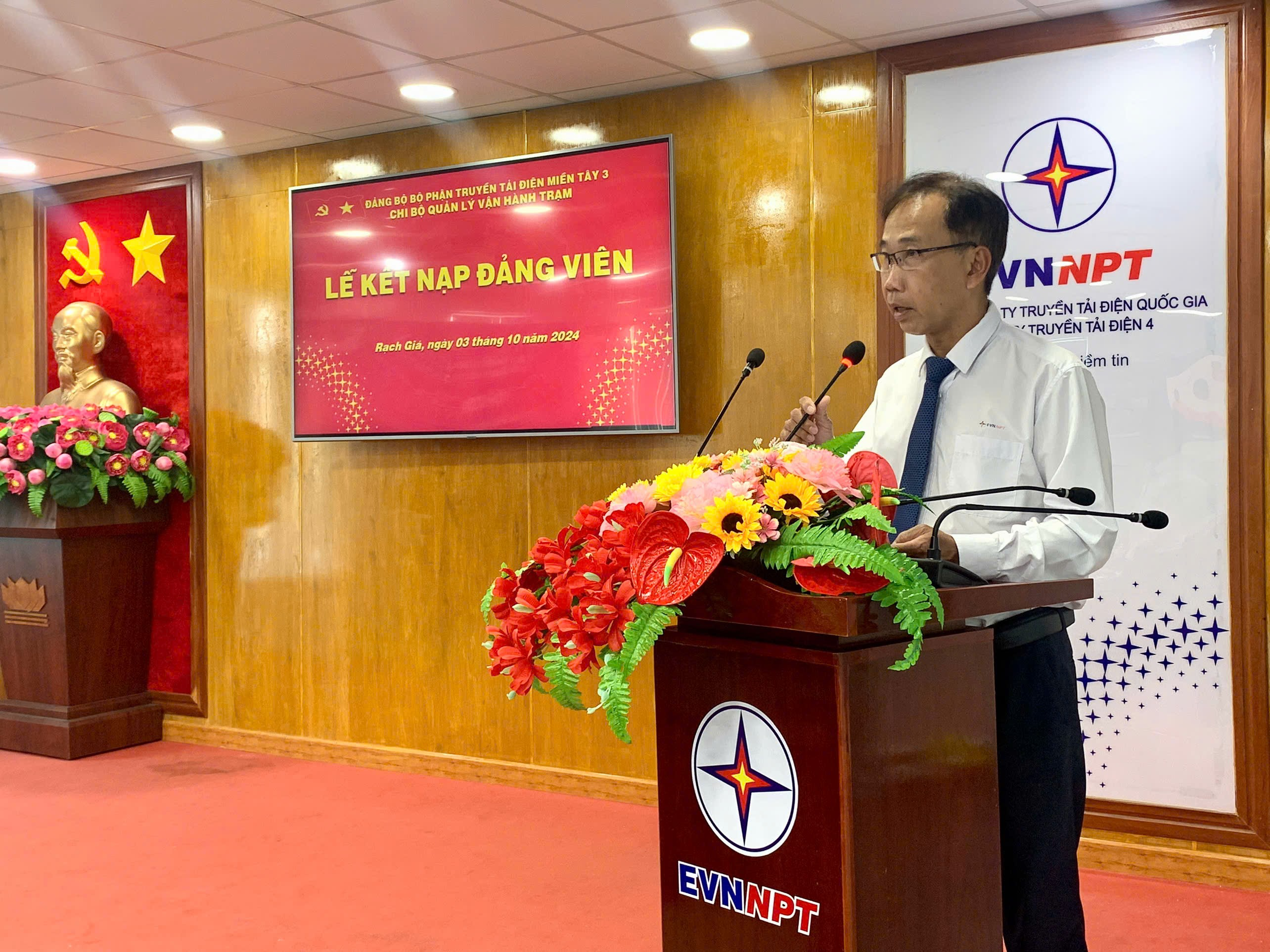 Đồng chí Huỳnh Võ - Bí thư Chi bộ Quản lý vận hành trạm công bố quyết định kết nạp đảng đối với đảng viên mới