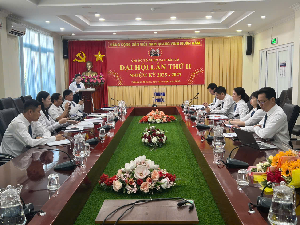 Tại Đại hội, 100% đảng viên chính thức tán thành thông qua Dự thảo Nghị quyết Đại hội Chi bộ Tổ chức và Nhân sự lần thứ II nhiệm kỳ 2025 – 2027. Chi bộ Tổ chức và Nhân sự quyết tâm và kêu gọi toàn thể cán bộ, đảng viên và CBCNV phát huy thành tích, khắc phục khuyết điểm, đoàn kết, thống nhất, quyết tâm nâng cao năng lực lãnh đạo và sức chiến đấu, xây dựng chi bộ hoàn thành xuất sắc nhiệm vụ, góp phần thực hiện thắng lợi Nghị quyết Đại hội Đảng lần thứ XIII của Trung ương, các nghị quyết, chỉ thị của Đảng ủy cấp trên và Nghị quyết Đại hội Chi bộ Tổ chức và Nhân sự nhiệm kỳ 2025 – 2027./.