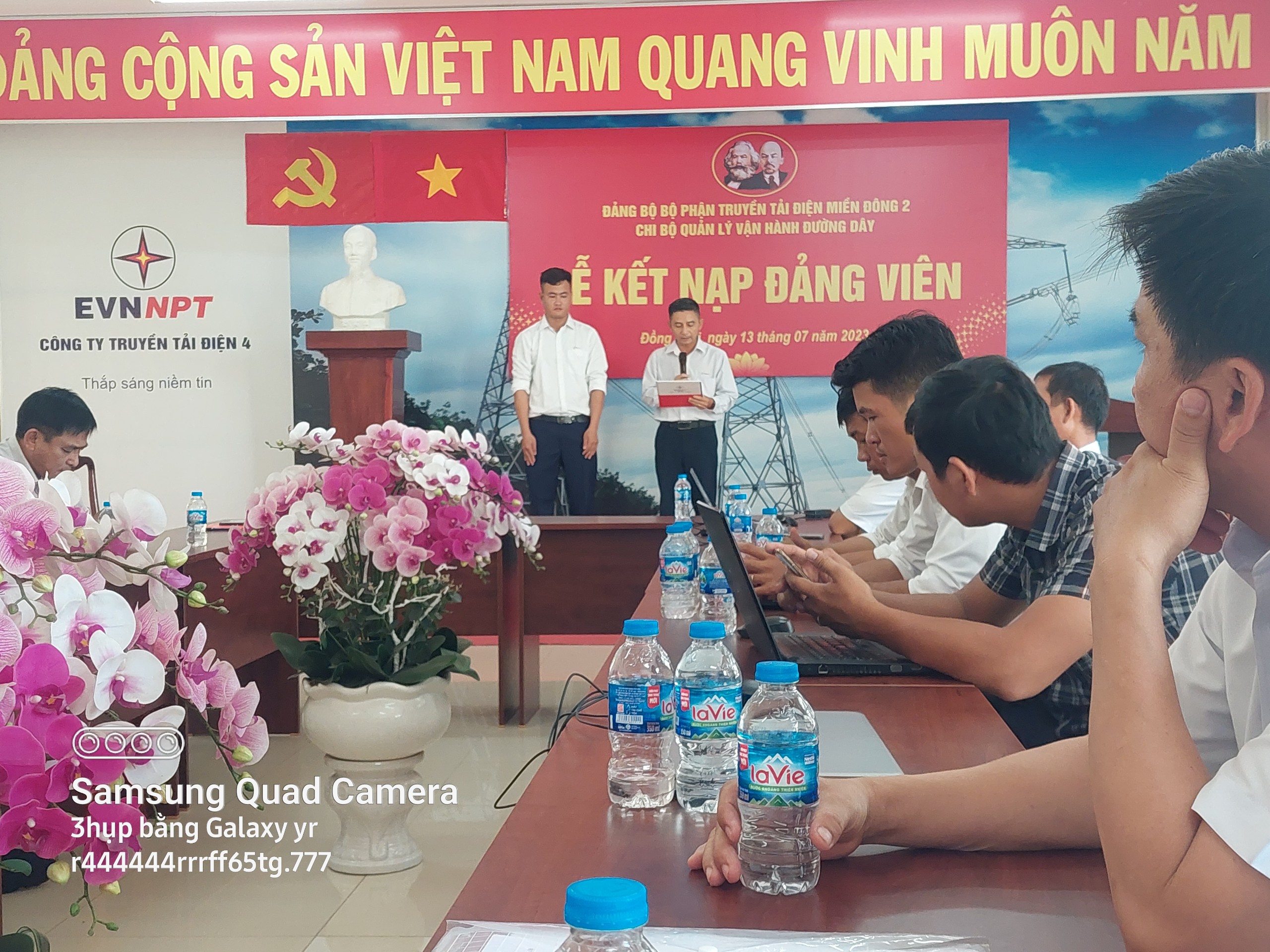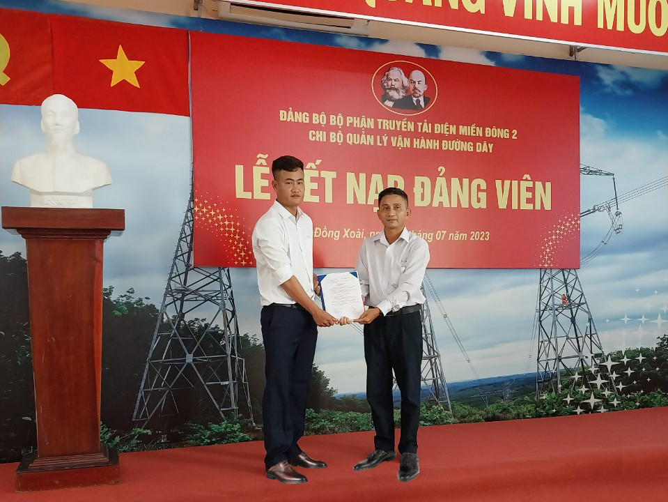 Lễ kết nạp đảng viên mới được diễn ra trong không khí trang nghiêm, đúng trình tự, thủ tục của Điều lệ Đảng. Thay mặt Chi bộ, đồng chí Nguyễn Văn Lịch - Bí thư Chi bộ QLVH đường dây- Phó Giám đốc TTĐMĐ2 đã trình tự trao Quyết định kết nạp Đảng cho quần chúng ưu tú: Đinh Xuân Hòa công nhân kỹ thuật đội TTĐ Bù Đăng.