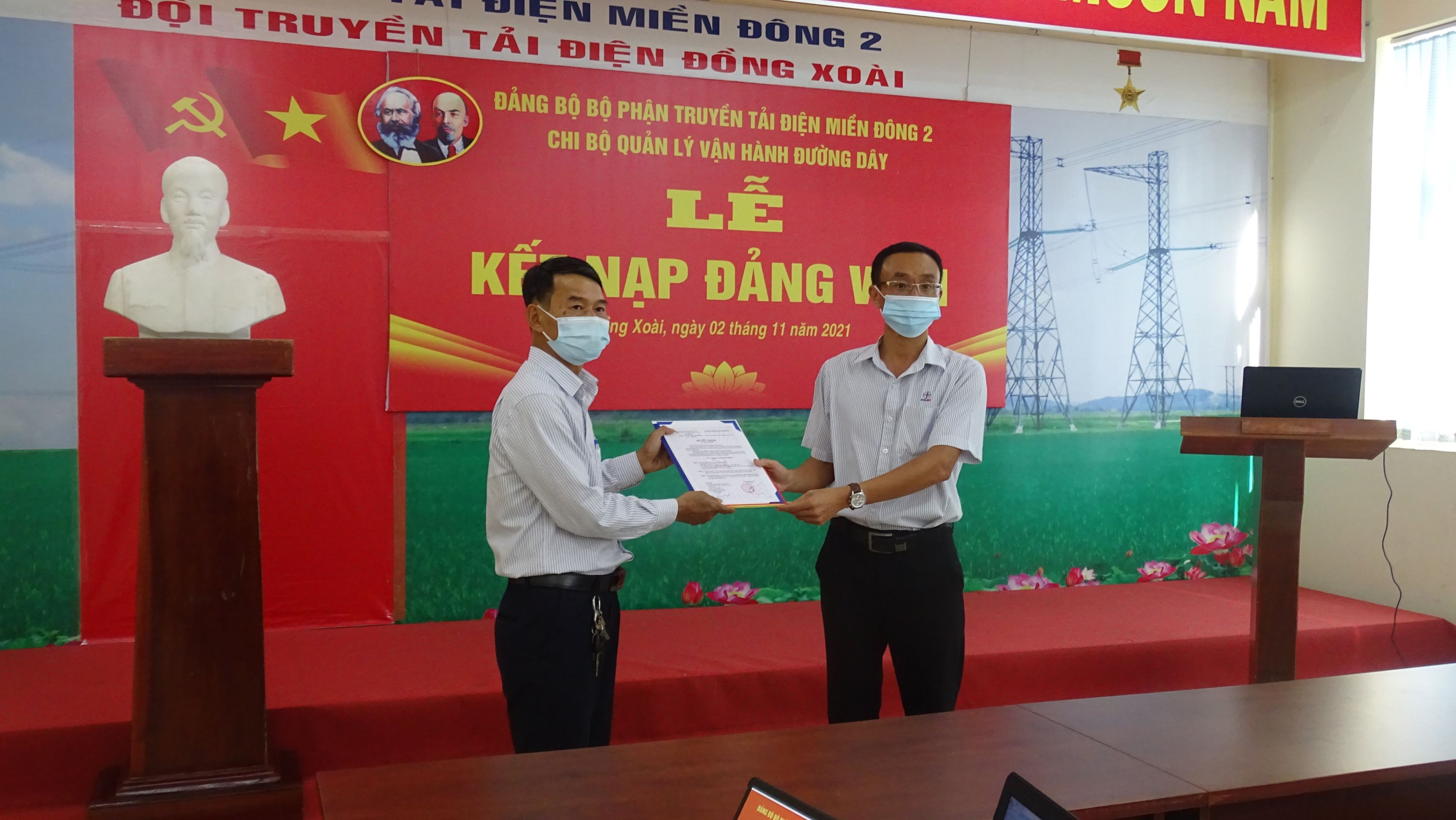 Sáng ngày 02/11/2021 Chi bộ quản lý vận hành đường dây thuộc Đảng bộ bộ phận Truyền tải điện miền Đông 2 làm lễ kết nạp đảng viên mới cho 02 quần chúng ưu tú vào Đảng Cộng sản Việt Nam theo Quyết định số 165-QĐ/ĐU; Quyết định 166-QĐ/ĐU; ngày 15/10/2021 của Đảng ủy Công ty Truyền tải điện 4 dưới hình thức tổ chức trực tuyến (Zoom).