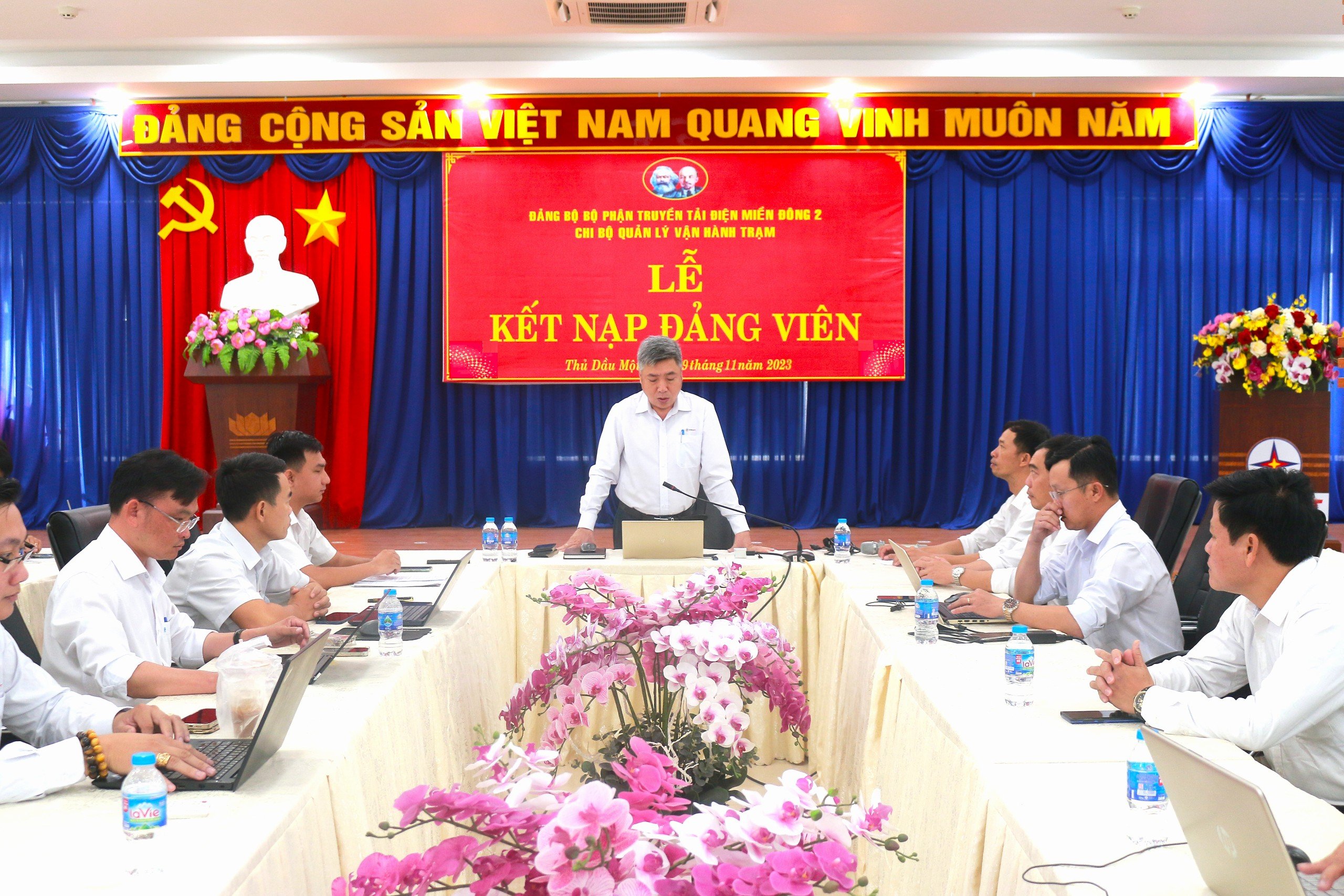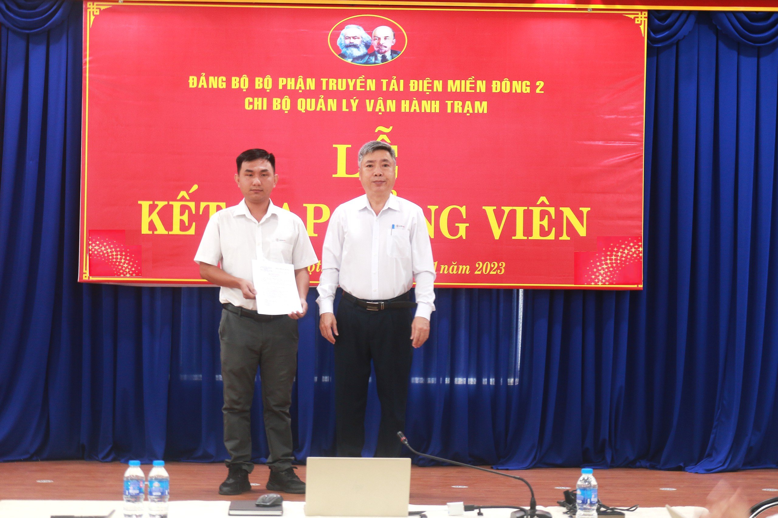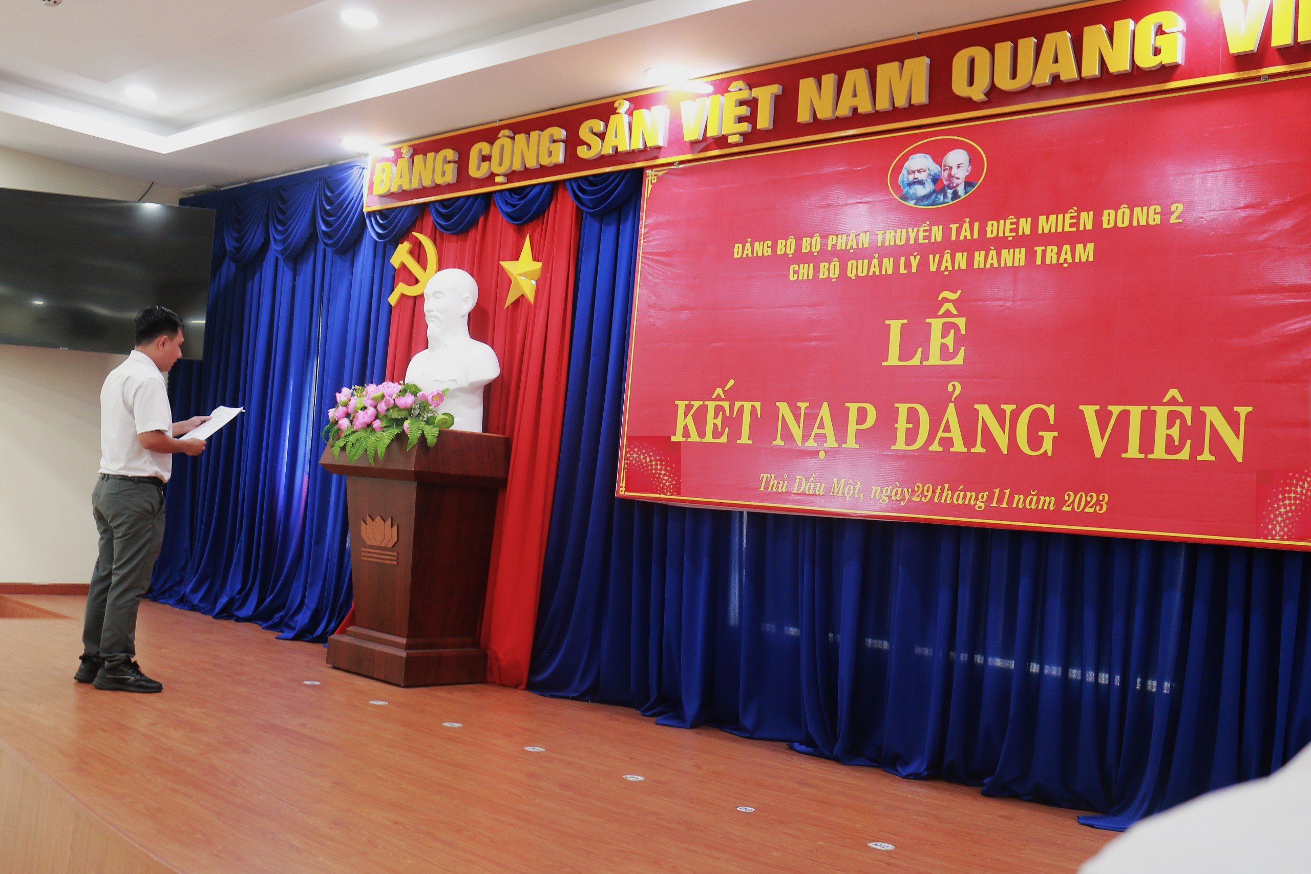 Lễ kết nạp đảng viên mới được diễn ra trong không khí trang nghiêm, đúng trình tự, thủ tục của Điều lệ Đảng. Thay mặt Chi bộ, đồng chí Lê Thế Sỹ - Bí thư Chi bộ QLVH Trạm biến áp- Phó Giám đốc TTĐMĐ2 đã trình tự trao Quyết định kết nạp Đảng cho quần chúng ưu tú: Đỗ Mạnh Tuấn điều hành viên trạm biến áp 500kV Tân Uyên.